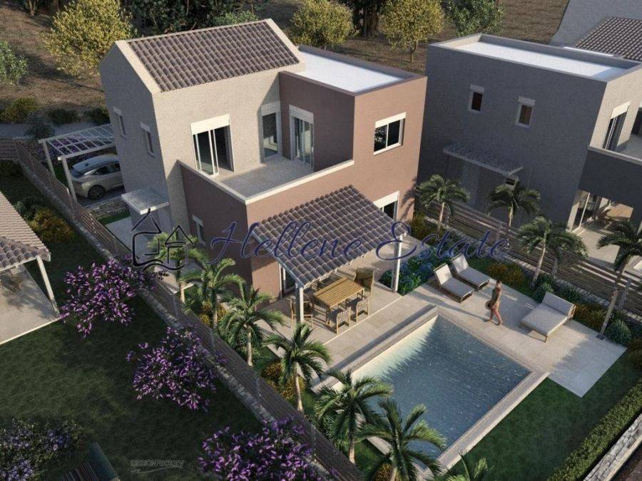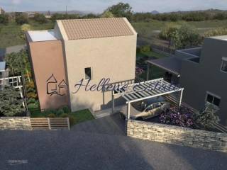 Municipality of PLATANIA, Modi * In an area ideal for a peaceful, nature-loving lifestyle, a two-story house with a garden is for sale in a complex of four houses. The maisonette has a total area of 119.19 m² and occupies an independent plot of 288 m². The building is ultra-modern, luxurious, and alternatively constructed with a metal frame, careful aesthetics, and architectural design for comfort, ergonomics, functionality, and quality living. This residence is developed on two levels as follows: the ground floor with 68.82 sq.m. includes a comfortable open-plan space (living room-dining room-kitchen), one bedroom, bathroom, storage space, and comfortable terraces with direct access to the outdoor area. The first floor, with an area of 50.37 m², has two comfortable bedrooms, a bathroom, and a large balcony with beautiful views of the mountains and the lush green area. Outside, the residence is surrounded by a rectangular fenced and tree-planted area for private and exclusive use. The modern construction of the houses with a metal frame is distinguished by the high-quality certified materials that make it completely earthquake-proof and durable, the reinforced 3DPANEL masonry that ensures A+ energy efficiency, thermal insulation, and soundproofing. The architectural elements of the construction, such as the large openings, the positioning of each residence to ensure maximum privacy for residents, and independent parking and entrance demonstrate the special care taken in this innovative residential project. The complex also features: PVC exterior frames with thermal breaks and double glazing. Autonomous cooling and heating system. Security entrance doors. Parking spaces. Solar water heaters. Electric car charging station. There is ample space for the installation of a private swimming pool at an additional cost not included in the asking price of €330,000.00 Buying expenses: Ouragency commission from the buyer is 2,5% + VAT on the final purchase price. Issuer ofthe invoice is G.-Alexandros Papadakis, licensed estate agent withGeneral Commercial Registry Νumber 163982258000. Hellene Estate does not accept responsibility as the information provided in this brochure is for information only and is subjectto errors, omissions, change of price or withdrawal without priornotice. Taxes, Lawyer, notary and registry fees must be paid by thepurchaser. The mentioned surface is the gross livable surface includinginterior and exterior walls.