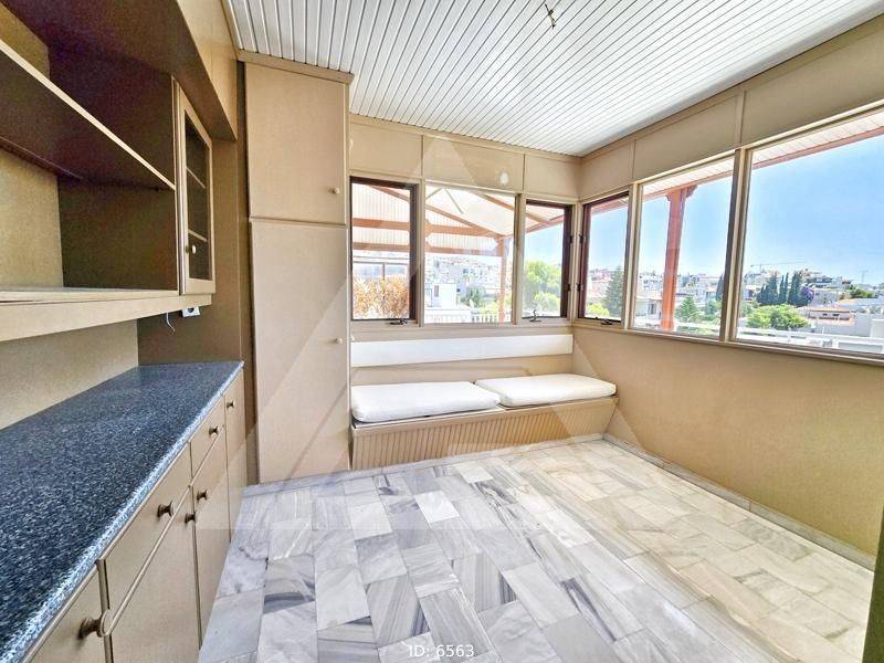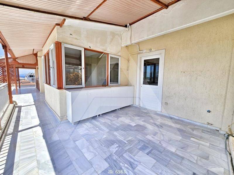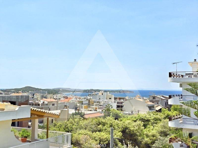 Voula, Dikigorika - Floor Apartment 138sqm bedrooms 2, master bedroom, levels 1, 3rd (138sqm), penthouse, very good condition, year built 1990, energy class D, living room, kitchen, 2 bathrooms, heating type: autonomous (air condition), parking ground floor, quiet, dual aspect apartment, luminous, sea view, frontage, storage space 12sqm, solar heater, fireplace, balconies, large balconies, balcony 80sqm, tents, elevator, built in appliances, aluminum frames, double glazed windows, door screen, wood & marble floors, separate kitchen, night electricity discount rate, secure door, residential zone, southern orientation, access from asphalt.