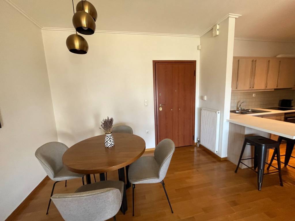 A bright 70 sqm apartment is offered for sale, located on the 2nd floor of a quiet residential building in Marousi (Soros). The property comprises a living room with fireplace, an open-plan kitchen with breakfast bar, two bedrooms and one bathroom. A large east-facing balcony provides natural light during the morning hours. The apartment is delivered furnished and fully equipped with electrical appliances, ready for immediate occupancy or use. It features autonomous heating, air conditioning in all rooms, a security door and alarm system, and is accompanied by a private covered parking space and a storage room. The property is fully regularised, free of encumbrances, with an Electronic Property Identity in place and all documentation readily available. The location offers direct access to Kifissias Avenue and Attiki Odos and is close to hospitals, major companies and business centres. The Nerantziotissa station is within short distance, while future transport planning for an additional metro line in the area further supports the long-term outlook of the property. A suitable option for owner-occupation or investment in a stable and evolving urban setting.