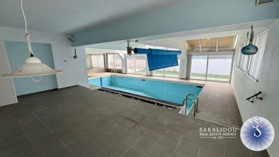 Located in an excellent position in Aixoni, Glyfada, one of the most privileged and tranquil areas of the southern suburbs of Athens, an impressive high-specification villa is offered for sale, with a total surface area of 861 sq.m. The property combines comfort, functionality, and luxury, offering ideal living conditions. The residence is developed over four levels, which are connected via an internal staircase and an elevator. The layout has been carefully designed to provide generous reception and everyday living areas, while ensuring privacy in the sleeping quarters. Large open spaces, wide openings, and a dual-aspect design allow for abundant natural light throughout the day. The main living level consists of a spacious entrance hall, a very large open-plan living and dining area, as well as an additional smaller everyday living room that connects directly to the kitchen. This level also includes a guest WC and a laundry room. On the upper level, there is a truly expansive master bedroom featuring a walk-in closet, an en-suite marble bathroom, and a separate office space. The same level also includes three additional main bedrooms, one with its own en-suite bathroom, while the other two share a common bathroom. Additionally, there is one more auxiliary room. The lower level features a large gym area, an impressive indoor swimming pool with direct access to the garden, changing rooms for the pool including a bathroom, and a staff bedroom. Finally, on the lowest level, there is the parking area, storage spaces, and the technical rooms housing the pool, heating, and elevator systems. This level also includes a playroom with a billiards table, which also provides access to a section of the garden. This villa represents a rare opportunity in the Glyfada area, combining substantial size, quality construction, and a truly prime location.
