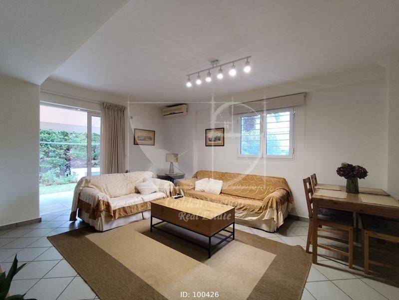 Voula - Apartment 75sqm fully furnished, bedrooms 2, levels 1, ground floor, excellent condition, year built 2015, energy class B, living room, kitchen, bathroom, heating type: autonomous, air condition, parking ground floor, frontage, painted, electric roller shutters, storage space, garden, wood & tile floors, secure door, luxurious, pets allowed, within city plan, residential zone, access from asphalt.