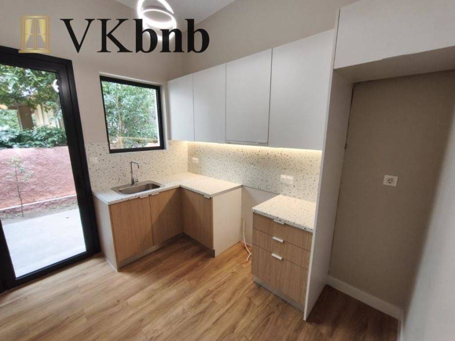Mosxato, Center, Apartment For Rent, 61 sq.m., Property Status: Very Good, Floor: Ground floor, 1 Level(s), 1 Bedrooms 1 Kitchen(s), 1 Bathroom(s), Heating: Electricity, Building Year: 1975, Energy Certificate: C, Floor type: Wooden floors, Type of door frames: Aluminum, Features: Security door, CCTV, Window Screens, No shared expenses, Airy, Roadside, Bright, AirConditioning, Solar water system, Back yard (Garden), Renovated, Price: 650€. VKbnb, Tel: 6975689005, email: info@vkbnb.gr