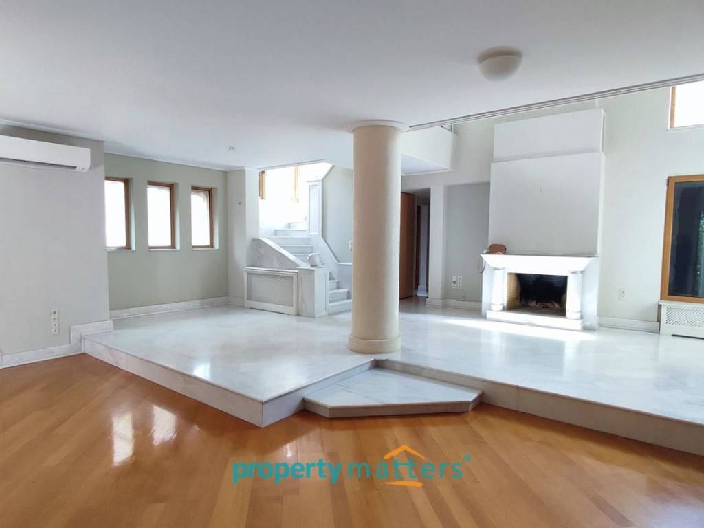Maisonette 325. 81 sq. m., 3 levels, with additional space 58. 36 sq. m. (garage & storage), built in 1996 , opposite the park. Consists of : Ground floor (113. 99 sq. m.): living room with fireplace, dining area, kitchen, office or bedroom, guest w. c. Floor (123. 20 sq. m.): Three bedrooms, one wit h a bathroom and an additional bathroom that serves the other two bedrooms. Basement (88. 62 sq. m.): Playroom with fireplace, kitchen, bathroom, laundry room. From the basement, you communicate with the closed garage and the warehouse.
