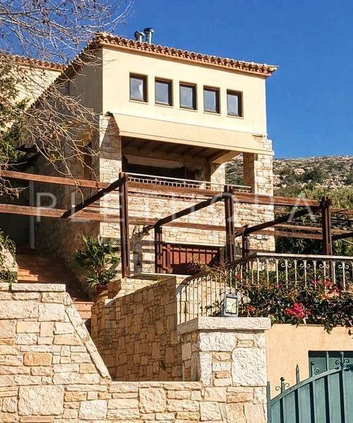 Saronida - Detached House 260sqm plot 564sqm, bedrooms 4, levels 3, ground floor (2 bedrooms, living room, bathroom) - 1st (living room, dinning room, kitchen) - 2nd (2 bedrooms, bathroom), excellent condition, year built 2000, renovation year 2025, energy class D, 2 living rooms, kitchen, 2 bathrooms, wc, heating type: autonomous (oil), air condition, parking, quiet, dual aspect apartment, luminous, sea view, frontage, painted, storage space, fireplace, balconies, large balconies, tents, garden, aluminum frames, double glazed windows, door screen, wood & tile floors, secure door, luxurious, swimming pool, private pool, internal staircase, pets allowed, within city plan, residential zone, south-western orientation, access from asphalt, close to sea (up to 2000m), close to market (up to 2000m).