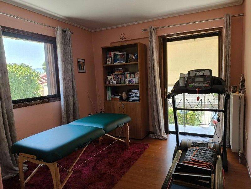 Porto Rafti, three-storey detached house for sale with panoramic sea & mountain views, built in 1996, renovated in 2020, 201 sq m, on a plot of 415 sq m, with 3 bedrooms (one master), living room with fireplace and bar, open plan kitchen-dining room, cloakroom, independent oil heating for each floor, large terrace with sea and mountain views, 2 external storage rooms (one with the boiler), open parking for 2 cars, BBQ, new air conditioners and electrical appliances, solar, wood and marble floors, wooden frames with screens. On the ground floor, 71 sq m., there are 2 rooms, the bathroom (with shower), a large hallway, an office space and a small storage room under the stairs, it communicates internally with a staircase, but it also has its own entrance that could function independently as an apartment. On the first floor, 93 sq m., there is the living room which has a fireplace and a bar, the dining room and the kitchen. On the attic, 37 sq m., there is the master bedroom (with a full bathroom) and in the hallway the dressing room. Distance from the sea one kilometer. Selling price 450,000 € Real Estate Sotiria Dogoritou 6955484788 more properties on the site dogoritou-realestate.gr mail s.dogoritou@gmail.com