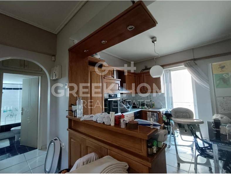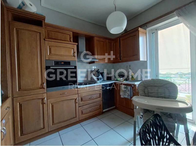 Lykovrysi, Centre - Apartment 74sqm bedrooms 2, 4th, very good condition, year built 1999, energy class A, living room, hall, kitchen, bathroom, wc, heating type: autonomous (natural gas), air condition, parking ground floor+covered, quiet, dual aspect apartment, luminous, corner, unobstructed view, frontage, storage space 10sqm, solar heater, fireplace, balconies, large balconies, tents, elevator, aluminum frames, double glazed windows, door screen, wood & tile floors, secure door, video doorbell, investment property, close to national road (up to 500m).