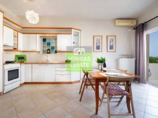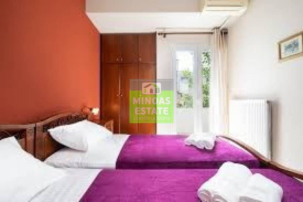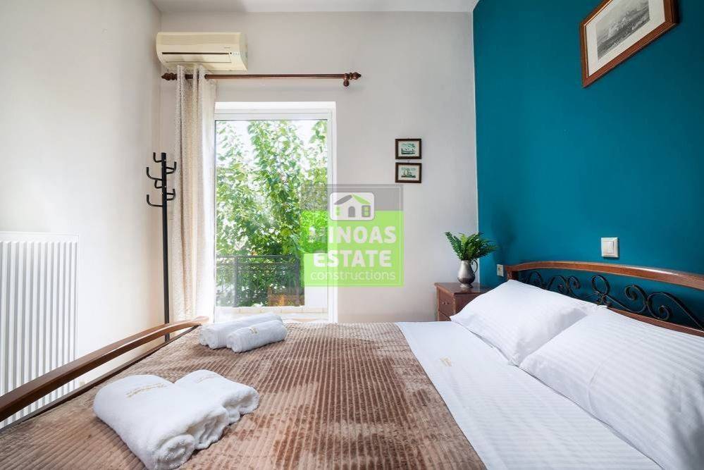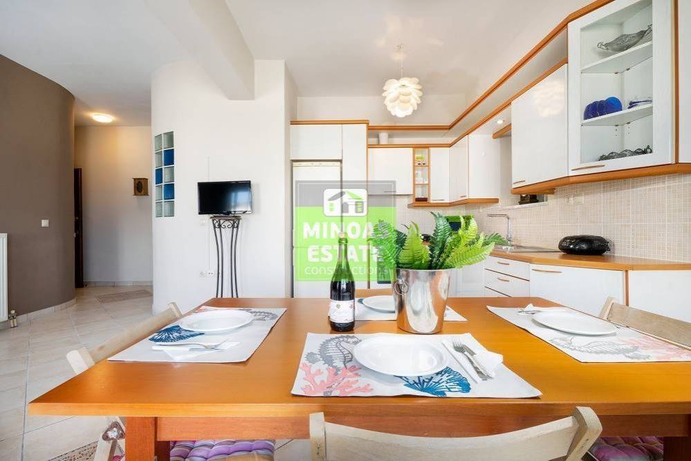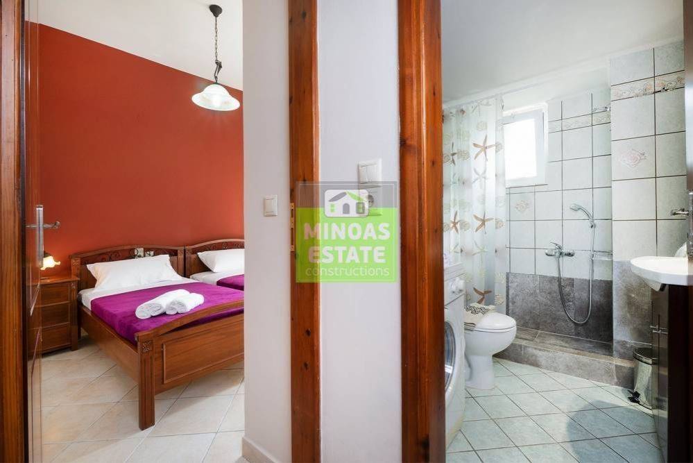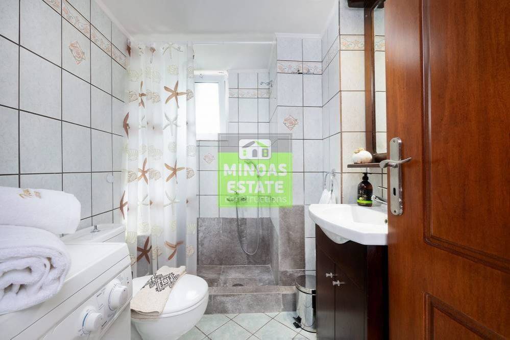 Nea Kydonia, Kato Stalos: For rent, fully renovated Apartment 75 sq.m. luxury, frontage on the 1st floor with individual oil heating and air conditioning. It consists of 2 bedrooms, 1 kitchen-living room, and a bathroom. It is fully furnished, equipped, with electrical appliances, painted and has a nice view, aluminum frames with double glazing, security door, 2 outside parking spaces, tile floors, screens, solar water heater. Located in an ideal spot in the area, Available from 15/12/2025 for long term rental. It is ideal for workers. Price €800 Property Code: #E-200949