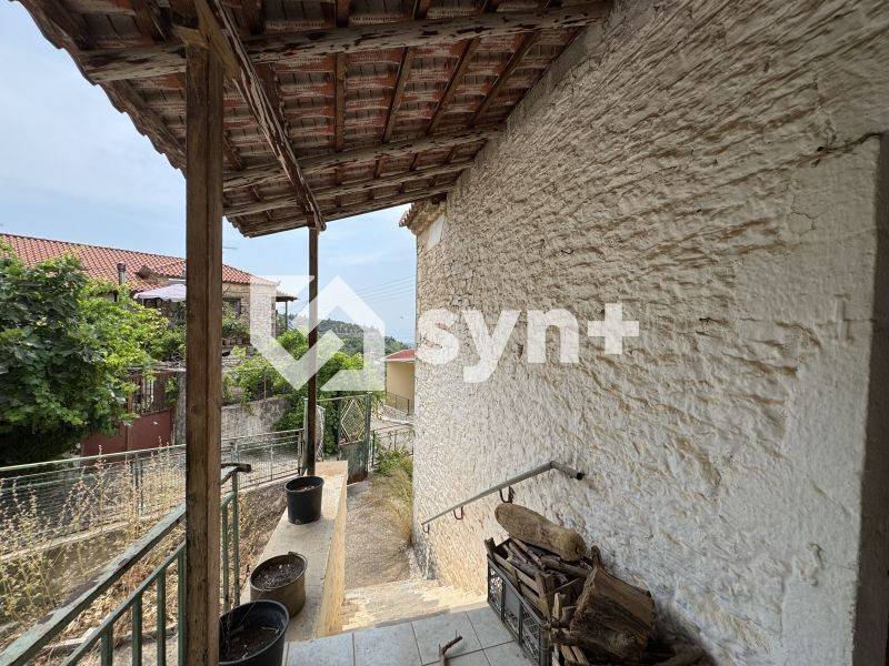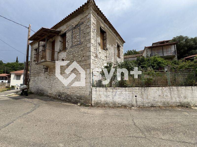 A traditional stone house for sale in Kalidona, Municipality of Zacharo, Ilia, Western Peloponnese. The property has a total surface of 220 sq.m. and is situated on a fenced plot of 235.22 sq.m., with frontage on the main village road.