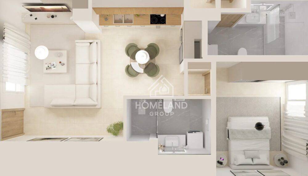 Athens east suburbs Gerakas for sale , Surface 49.0 sq.m, Ground floor Apartment , built in 2025 , New development,consists of 1 living room, 1 bedroom, 1 kitchen, 1 toilet, ( ). The heating system is autonomous - Heat pump , A/C, solar boiler.It also has , secure door, alarm system, CCTV, no shared costs, elevator, Internet, garden. Located near to Super market,Central square,Main street,Metro,Urban attitude,Schools,Cab. Price (190.000€) Property Code 202086 HomelandGroup Δηλμπόη 2,