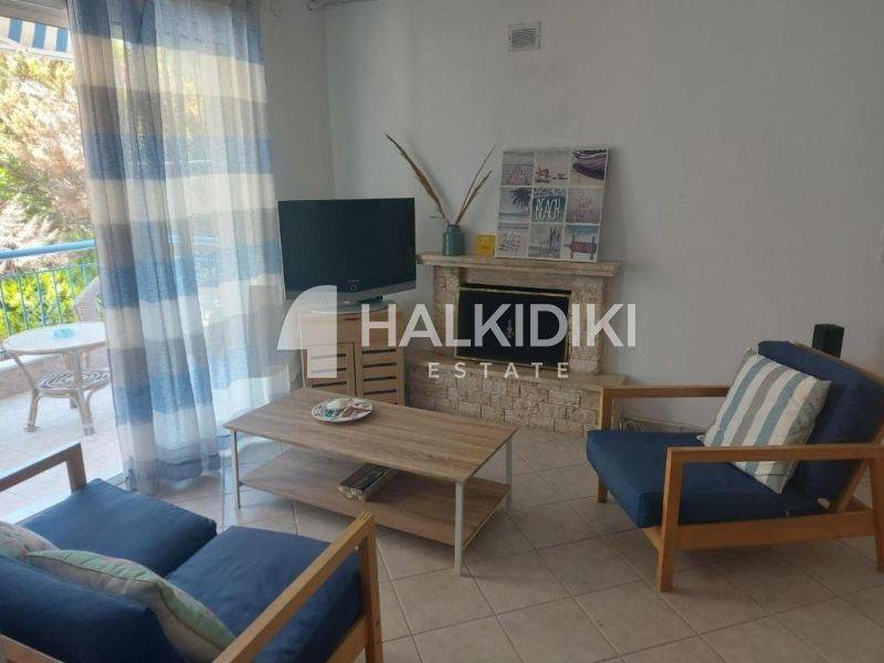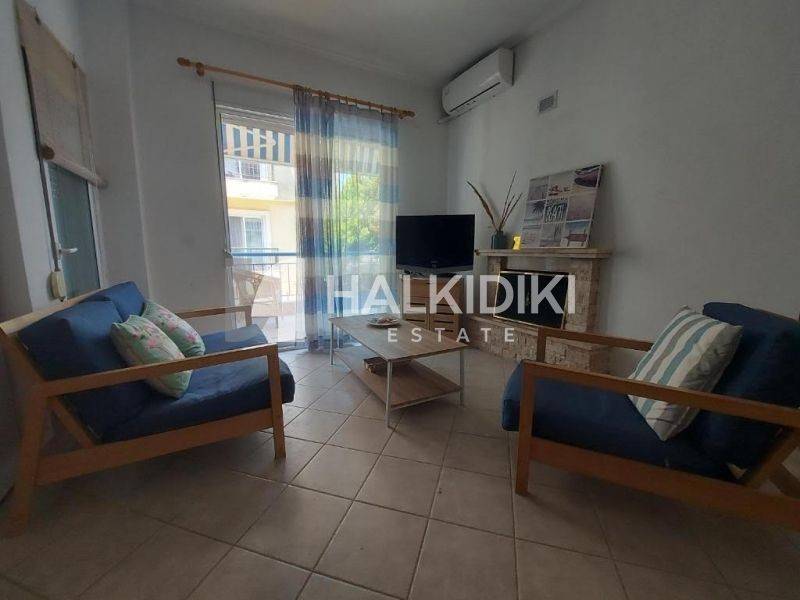 For sale: a stunning apartment in Kassandra, located in the picturesque area of Poseidi. Property Code: 1207 Discover enjoyable living in this furnished first-floor apartment, boasting a total area of 55 sq.m. This property features two comfortable bedrooms, a functional open-plan living area, and two bathrooms, providing ample space and comfort for you and your family. Built in 2002, the apartment includes individual electric heating, ensuring warmth and comfort throughout the year. Enjoy breathtaking views of the horizon from your balcony, while the synthetic frames and double glazing provide excellent sound and thermal insulation. The interior decor has been thoughtfully chosen, featuring tiled floors, a secure entrance door, built-in wardrobes for storage, and a fireplace that creates a cozy atmosphere. Additionally, the apartment is equipped with air conditioning, modern appliances, awnings, and screens, offering all the amenities you need. Its location is ideal, just 1500 meters from the sea and 1600 meters from the nearby village, with the airport a convenient 90 kilometers away. Don’t miss this exceptional opportunity to acquire a beautiful property in the heart of Kassandra