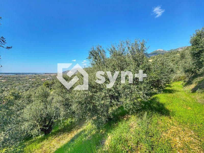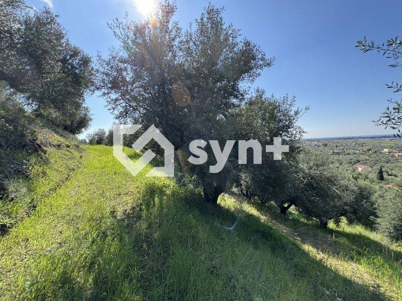 Επικλινές αγροτεμάχιο με φυσικές αναβαθμίδες/πεζούλες (terraced landscape), που επιτρέπει πολύ καλή αξιοποίηση του εδάφους και προσφέρει ιδιωτικότητα. Διαθέτει πανοραμική θέα προς τη θάλασσα του Κυπαρισσιακού κόλπου και τη λίμνη Καϊάφα.