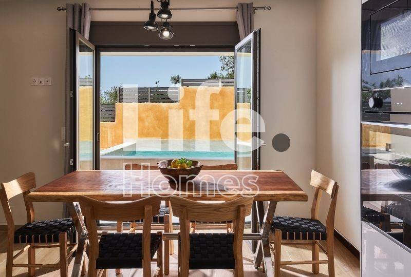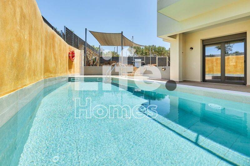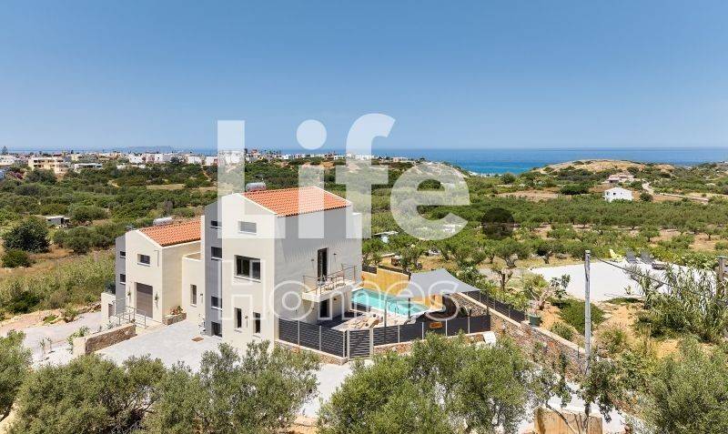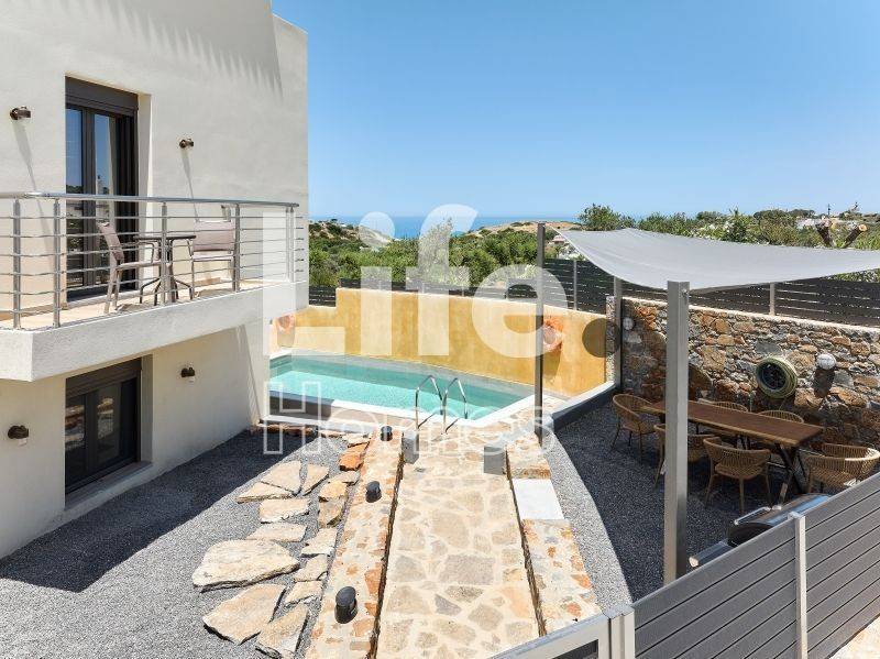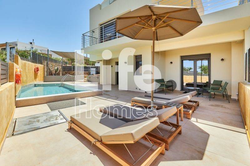 Property Code: 3-400 - Villa FOR SALE in Vrachasi Sisi for € 549.000 . This 208.00 sq. m. furnished Villa is on the 1 st floor and features 3 Bedrooms, an open-plan kitchen/living room, 2 bathrooms and a WC. The property also boasts Heating system: Individual - Electric, view of the Sea, Window frames: Aluminium, Armourplated door, a storage unit sqm, swimming pool, electrical appliances, solar-powered water heater, open space, internal staircase, balconies: 50 sqm. The building was constructed in 2025 Plot area: 550 s.q. . Building Energy Rating: A+