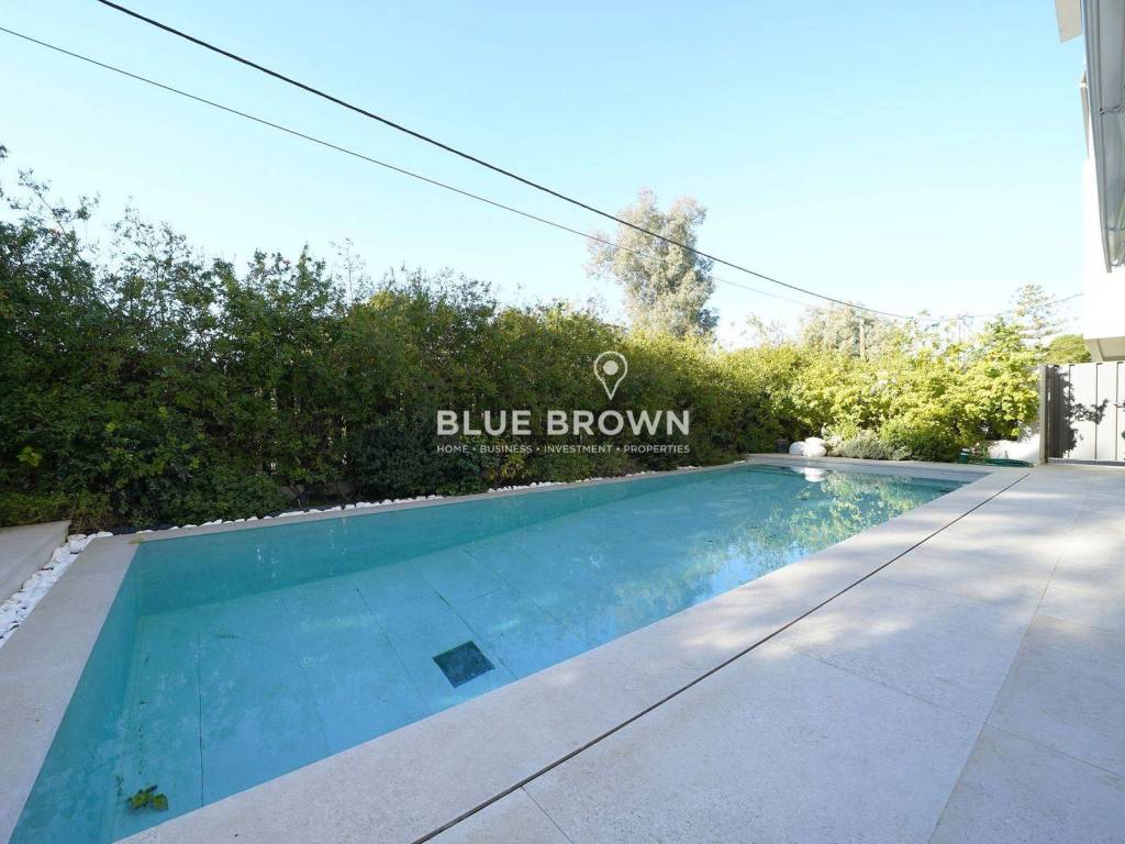 In the heart of Voula (Center), a luxury, brand-new maisonette of exceptional standards is offered for rent, with a total area of 335 sq.m., arranged over three levels (basement, ground floor, and first floor) and set on a 400 sq.m. plot. The property was constructed in 2023 and is completely new, offering contemporary residential solutions, superior build quality, and outstanding living comfort. The maisonette features an exceptionally functional and comfortable layout, comprising four bedrooms, all with en-suite bathrooms, as well as a guest WC. Additionally, there is a staff bedroom in the basement, also with its own private bathroom. The living areas include two generous living rooms, ideal for both family use and entertaining, while the fully equipped kitchen combines modern design with practicality. The residence also includes a staff/service room and an internal staircase that seamlessly connects all levels. In terms of construction and equipment, the property meets the highest modern standards. It offers autonomous heating via a heat pump, underfloor heating, independent heating control per level, and air conditioning throughout. Additional features include a boiler, full thermal insulation and external thermal façade, thermally insulated aluminum window frames with triple glazing, wooden flooring, and an energy-efficient fireplace. The outdoor areas provide an excellent level of comfort and privacy, featuring a private swimming pool, a landscaped garden, and spacious terraces, ideal for relaxation and social gatherings. The residence also offers two underground parking spaces, an elevator, electric shutters, and insect screens, and is delivered fully furnished and equipped with electrical appliances. Regarding safety and convenience, the maisonette is equipped with a security door, video intercom, alarm system, and CCTV cameras, while pets are allowed. The property is front-facing, dual-aspect, and exceptionally bright, airy, and sunlit, representing a luxury, energy-autonomous residence. The location is outstanding, situated in central Voula, with immediate access to the sea, the local market, and all essential services and infrastructure. This property represents a rare rental opportunity, ideal for families or discerning tenants seeking a contemporary luxury home, high energy efficiency, and an exceptional quality of life in the southern suburbs of Athens. The property has an A+ energy efficiency rating.