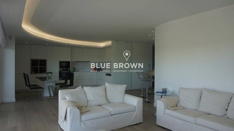 In East Attica, in the area of Vouliagmeni, an excellent penthouse apartment on the 2nd floor with a stunning sea view is available for rent. This is a luxurious apartment, construction of 2018, which comes fully furnished and equipped with all electrical appliances. It consists of 3 master bedrooms with 3 bathrooms, a w/c, a spacious living room with large balconies offering a wonderful view and a functional kitchen in the same space. It features wooden floors, aluminum frames with double glazed windows and screens, a security door, an alarm system and a satellite dish. The heating is autonomous with fan coil units, and there are also air conditioning units for cooling and a solar water heater with a boiler for hot water. It is located in an amazing location, very close to the beach, with direct access to the market and public transportation. It is a B+ energy efficiency–rated property.