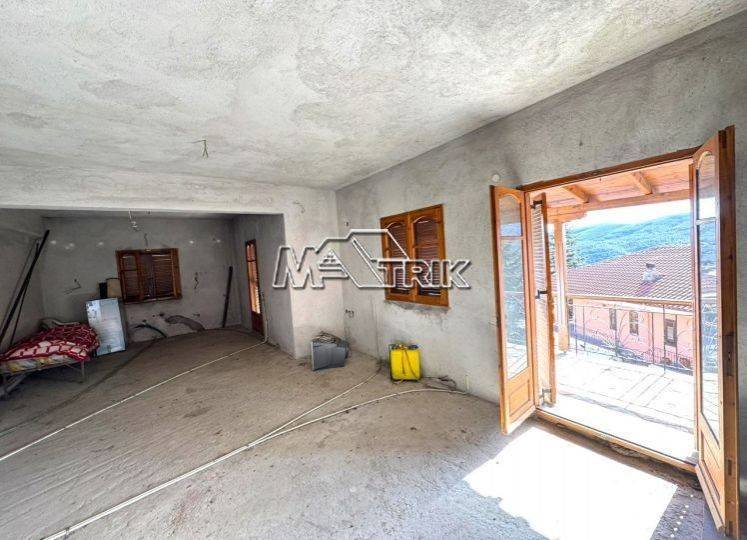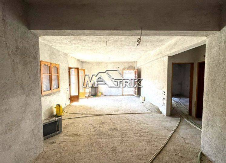 Chalkidiki, Taxiarchis, semi-finished second floor apartment 85 sqm with unobstructed view. It consists of two bedrooms, a kitchen-living room and one bathroom. It has wooden frames and a door, as there is pre-installation for oil boiler and a/c. It has a very large balcony on three sides and its distance from the nearest beach of Metamorfosis is 20km.