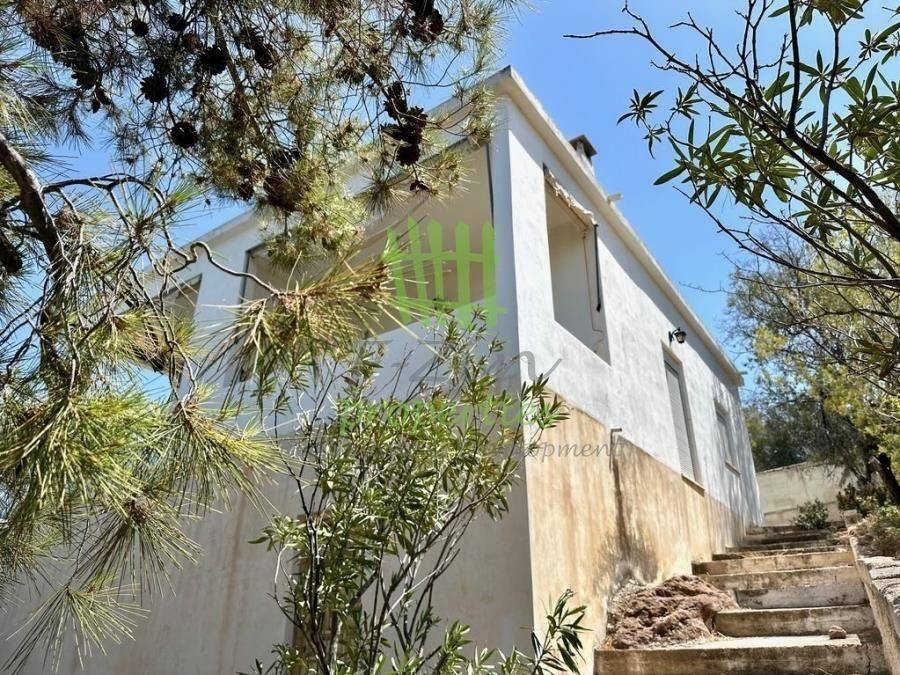 Aeginitissa, remarkable detached house on a large plot on 2 levels with uninhibited sea view, it consists of the ground floor of 93m2 which needs completion work and the 1st floor of 84m2 which consists of an entrance hall, kitchen, bathroom, comfortable bedroom plus a 2nd bedroom connected by a sliding door with the sitting room, a comfortable living room with fireplace, large front veranda of 24m2 with an awning and an impressive sea view, the plot has a total area of 1368m2 with stone fences and has several big trees (olives, figs, oleanders, pines, etc.) with great potential for exploitation, very valuable investment property perspective at a unique quiet spot with uninhibited view.