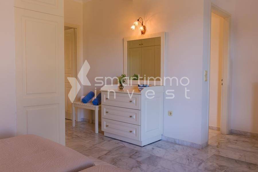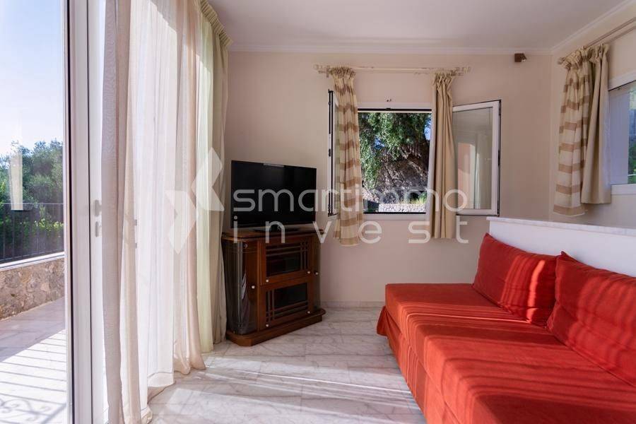 For sale is a luxurious and fully furnished villa with a total living area of 90 sq.m., plus an additional 25 sq.m. storage space, situated on a plot of approximately 1,000 sq.m., in a privileged and tranquil location in Feakes, Corfu. The residence is thoughtfully designed and comprises two comfortable bedrooms, two modern bathrooms, a bright living room and a functional kitchen, making it ideal for permanent residence, a holiday home or high-standard tourist investment. The outdoor area features a private swimming pool as well as a separate children’s pool, enhancing both functionality and appeal for families and guests. The landscaped garden and spacious outdoor areas create an ideal setting for relaxation and entertaining, ensuring privacy and quality living in a serene environment. This property represents an excellent opportunity of high aesthetic and investment value in one of the most sought-after areas of Corfu, perfectly combining tranquility, natural surroundings and easy access to essential amenities and nearby beaches.