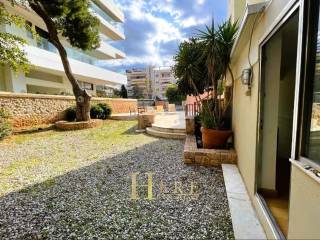 In a prime residential area of Glyfada, within walking distance of the vibrant market, the town center, and the beach, this elevated ground-floor residence of 94 sq.m., complemented by 45 sq.m. of auxiliary spaces, offers a unique multi-level layout and excellent potential. Built in 2002, the property unfolds across three internally connected levels, creating a distinctive and highly functional spatial arrangement. On the elevated ground floor, there are two well-proportioned rooms along with an additional living area, ideal for use as a lounge, office, or flexible reception space. Descending a few steps, you will find two additional bright rooms featuring a glass ceiling with a specially designed shading structure, allowing abundant natural light while ensuring comfort and privacy. These rooms also benefit from windows overlooking the garden, enhancing the sense of openness and tranquility. Further down, at the basement level, the property comprises a spacious kitchen, one bathroom, a storage room, and an additional sitting area, offering versatility for either residential or professional use. The residence also enjoys access to a communal garden and swimming pool, adding significant lifestyle value and a sense of exclusivity. Security door, alarm system, aluminum window frames, night electricity tariff, and autonomous electric heating complete the property’s features. The kitchen and main bathroom are in need of renovation, providing the opportunity for customization according to modern standards and personal taste. An excellent opportunity in one of the most desirable locations of the Athenian Riviera, suitable for both owner-occupation and investment.