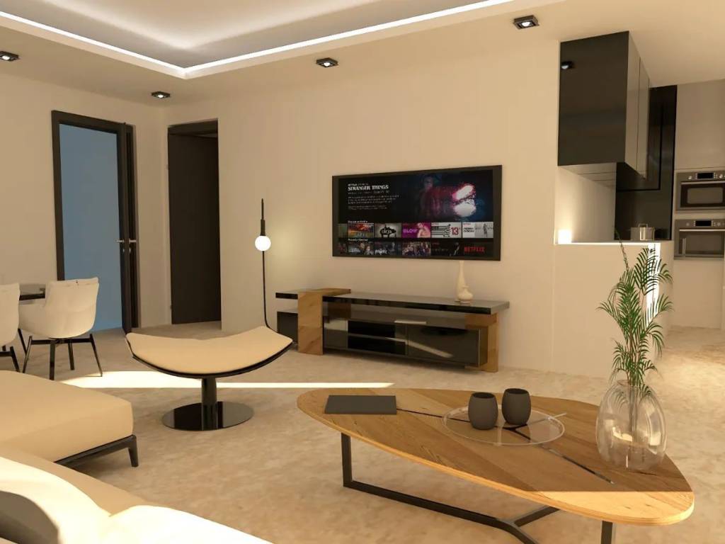 Αποτελείται από έναν ενιαίο χώρο σαλονιού, κουζίνας και τραπεζαρίας με μεγάλα κουφώματα και μπαλκόνι. Διαθέτει δύο υπνοδωμάτια με ντουλάπες καθώς και ένα μπάνιο. Το διαμέρισμα διαθέτει μεγάλη θέση parking pilotis και υπόγεια αποθήκη