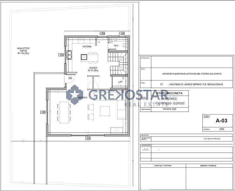 Extra: Υπάρχει μελέτη για κατασκευή μονοκατοικίας συνολικού μεγέθους 190τμ - Ισόγειο χώρο εμβαδού 81,00τμ στον οποίο διαμορφώνεται το καθιστικό, η κουζίνα και ένα wc - 1ο Όροφο εμβαδού 65,50τμ στον οποίο διαμορφώνονται 2 μεγάλα υπνοδωμάτια (1 master) και το βασικό λουτρό της κατοικίας - 2ο Όροφο- Σοφίτα εμβαδού 44,00τμ στον οποίο διαμορφώνεται 1 μεγάλο υπνοδωμάτιο με βεστιάριο και λουτρό Επιπλέον μπορεί να κατασκευαστεί υπόγειος χώρος 81,00τμ.