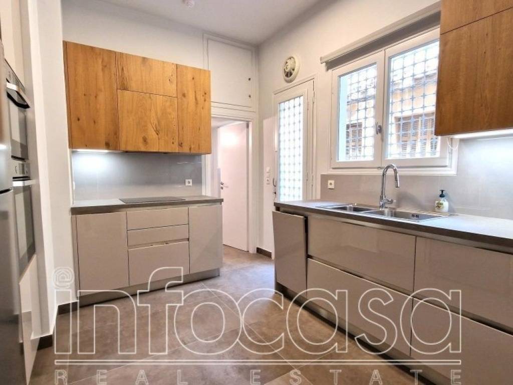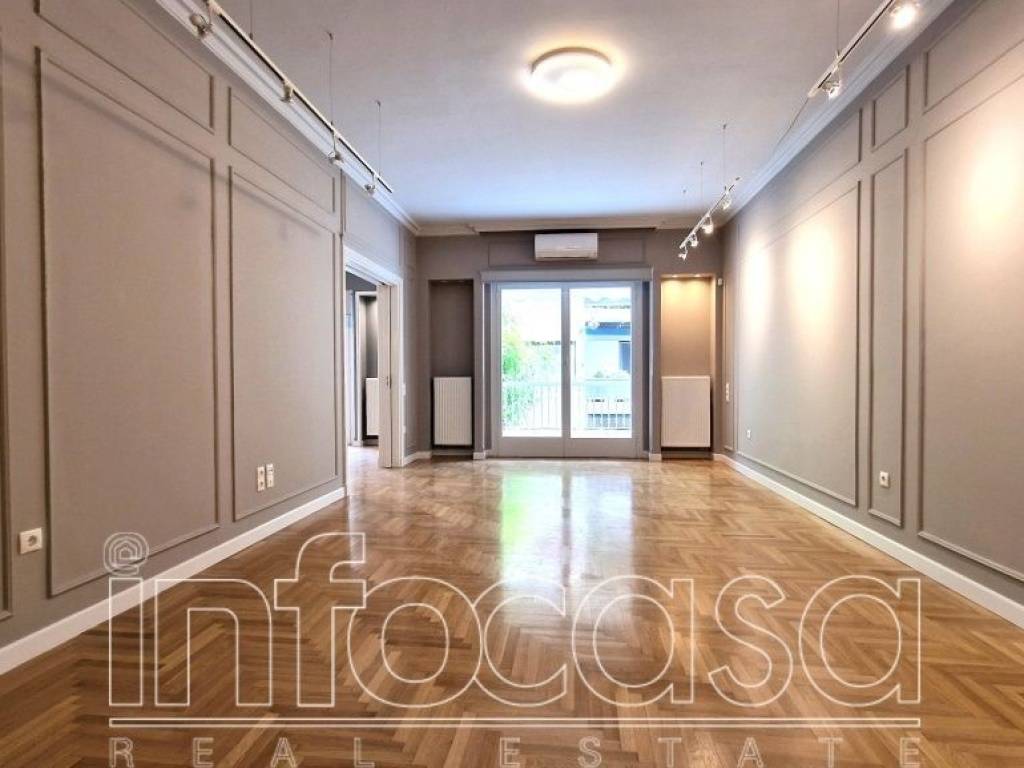 Kolonaki. Unique, fully renovated apartment 118 sq.m. on the 2nd floor, part of a luxury apartment building. It consists of spacious living room with balcony, dining area, autonomous and spacious kitchen equipped by branded electrical appliances, many storage spaces, 2 bedrooms with wardrobes and luxuriously renovated bathroom and WC. It has beautiful wooden floors, wooden frames with double glazing, autonomous heating, air conditioning, alarm system, security door and elevator. Appropriate for diplomats, business executives, a couple or a small family. Contact person: Elisa Keremetzi 6932390840.