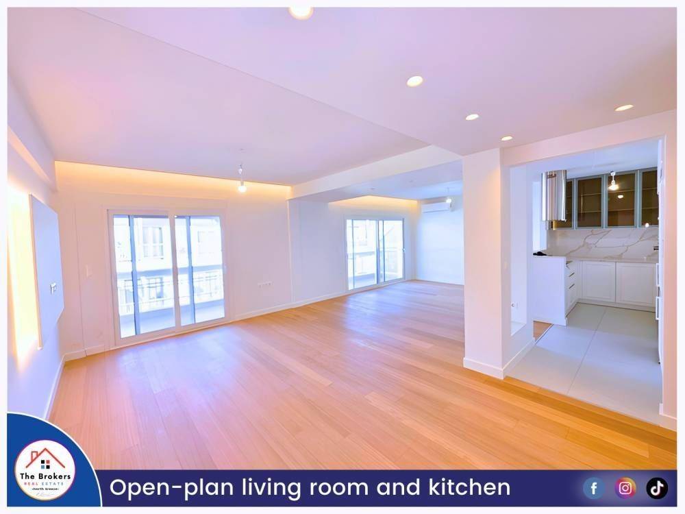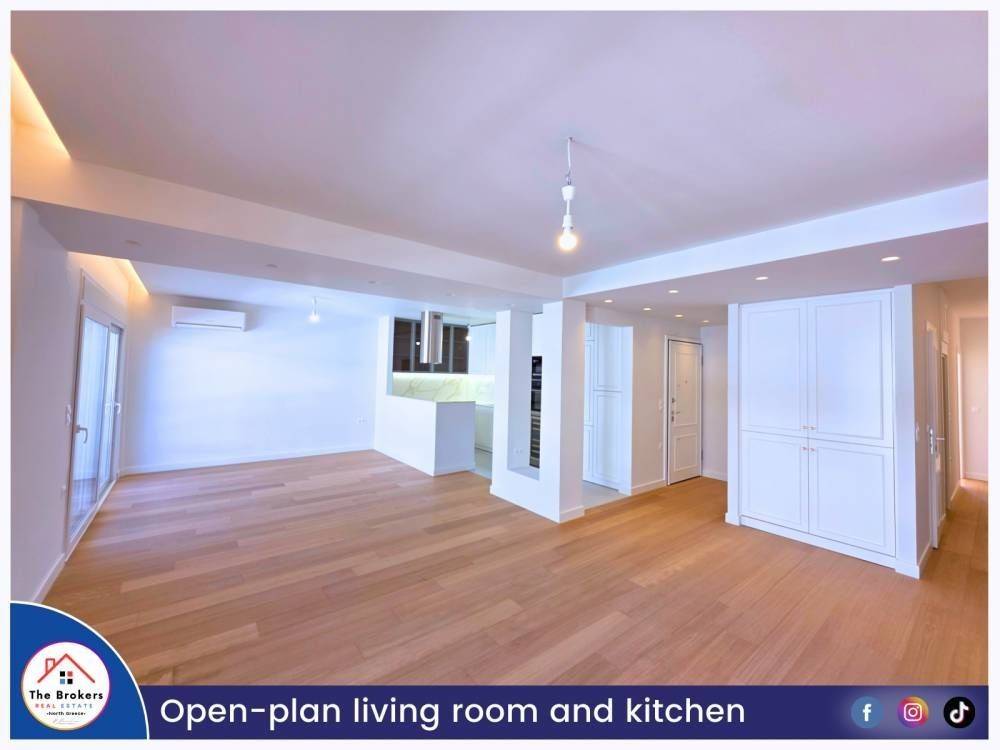 For sale an exceptional, bright 135 sq.m. apartment on the 8th and top floor of a residential building with elevator, radically and fully renovated, in a prime location of Thessaloniki, next to the sea.
