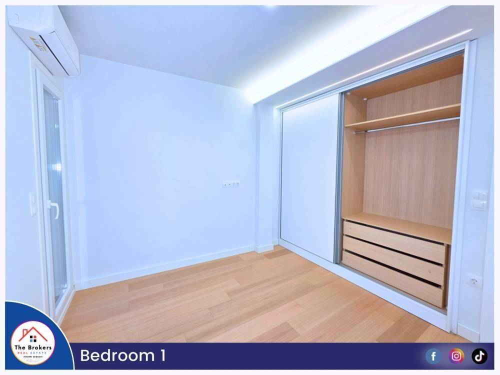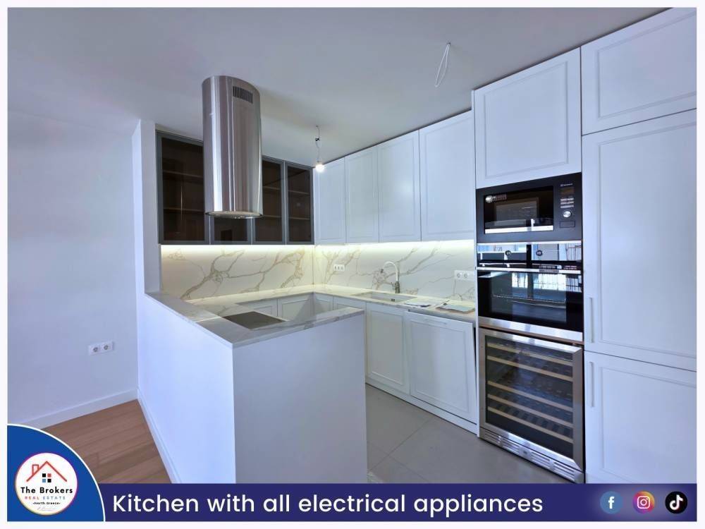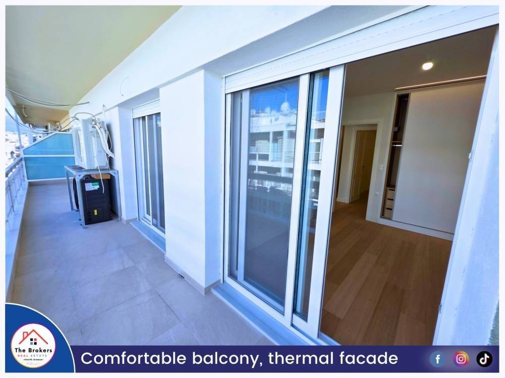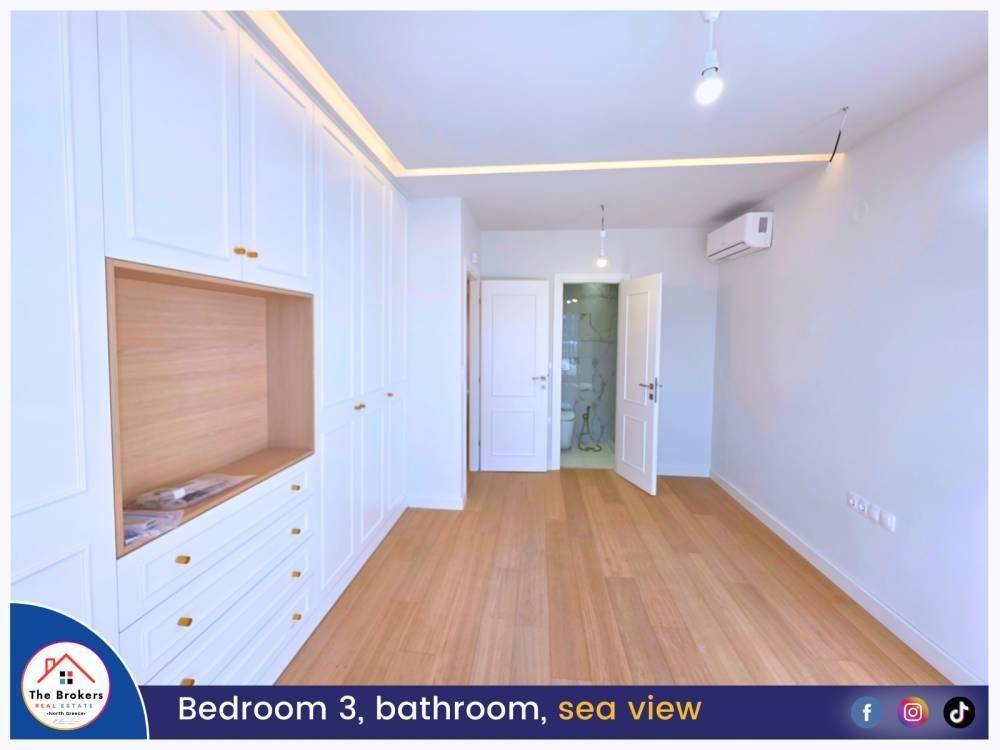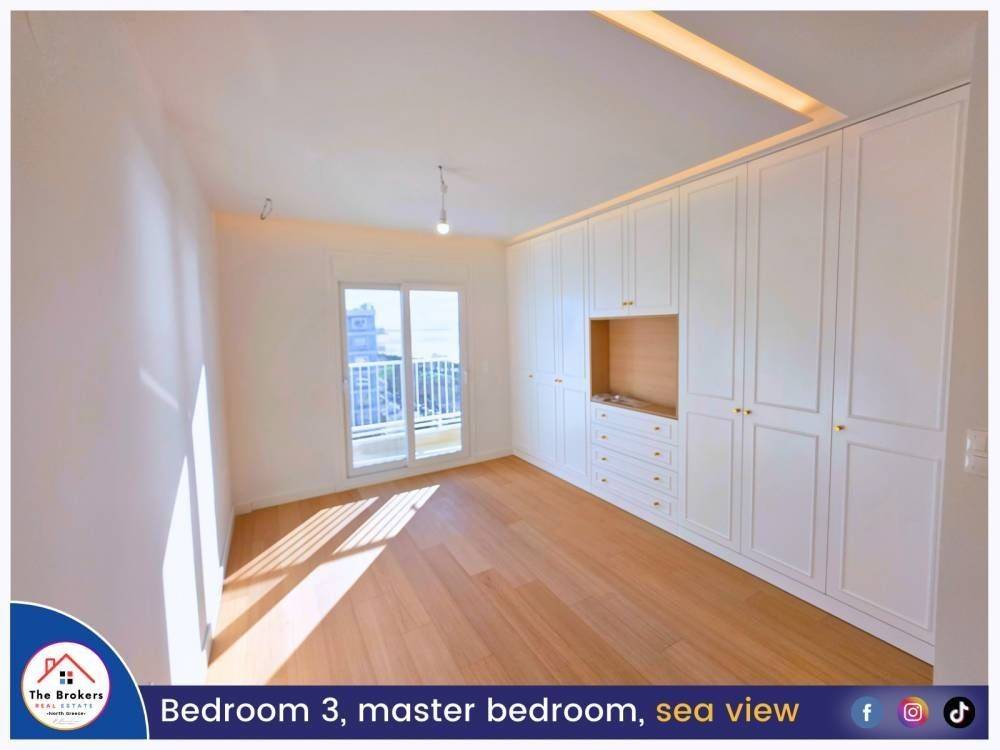 Features: The property consists of three spacious bedrooms with built-in wardrobes, one of which is a master bedroom with a private bathroom. It offers a total of two bathrooms and one WC, as well as a storage/laundry room. The modern kitchen communicates harmoniously with the living room and is fully equipped with all electrical appliances: refrigerator, oven, microwave oven, dishwasher, washing machine, and dryer. The apartment features underfloor heating with a heat pump, an alarm system, and air conditioning in all areas, ensuring comfort and high energy efficiency. The sea view adds significant value and quality of living.