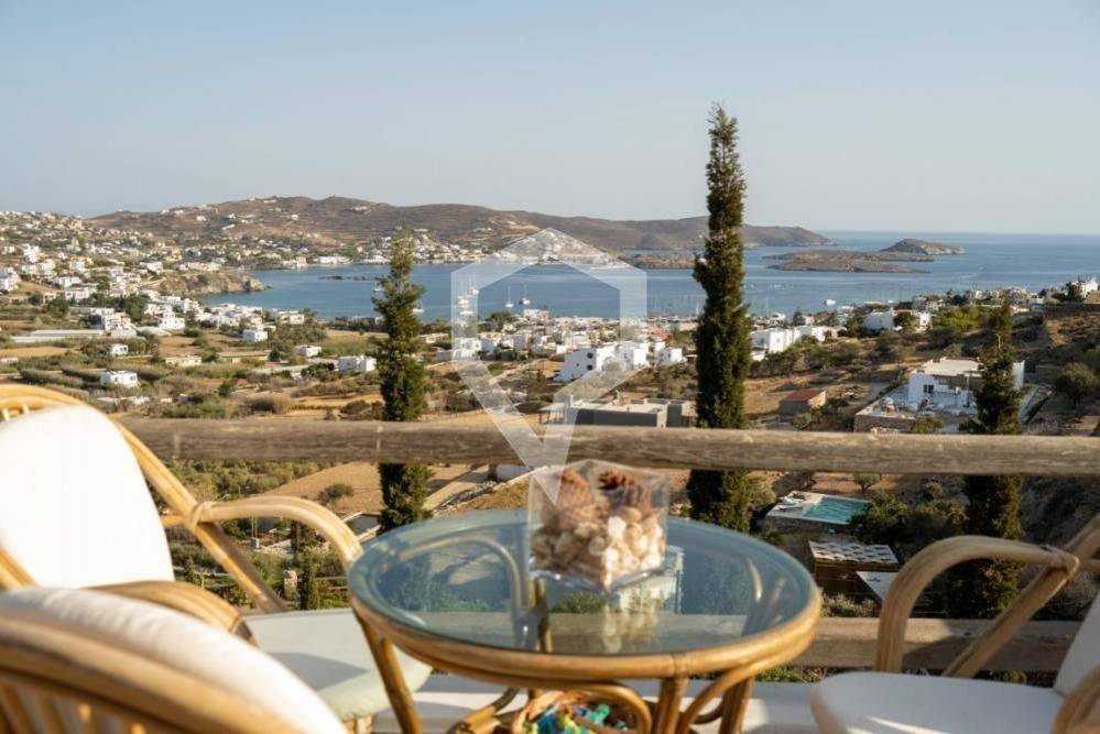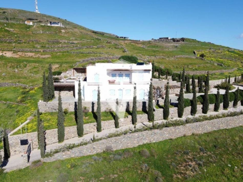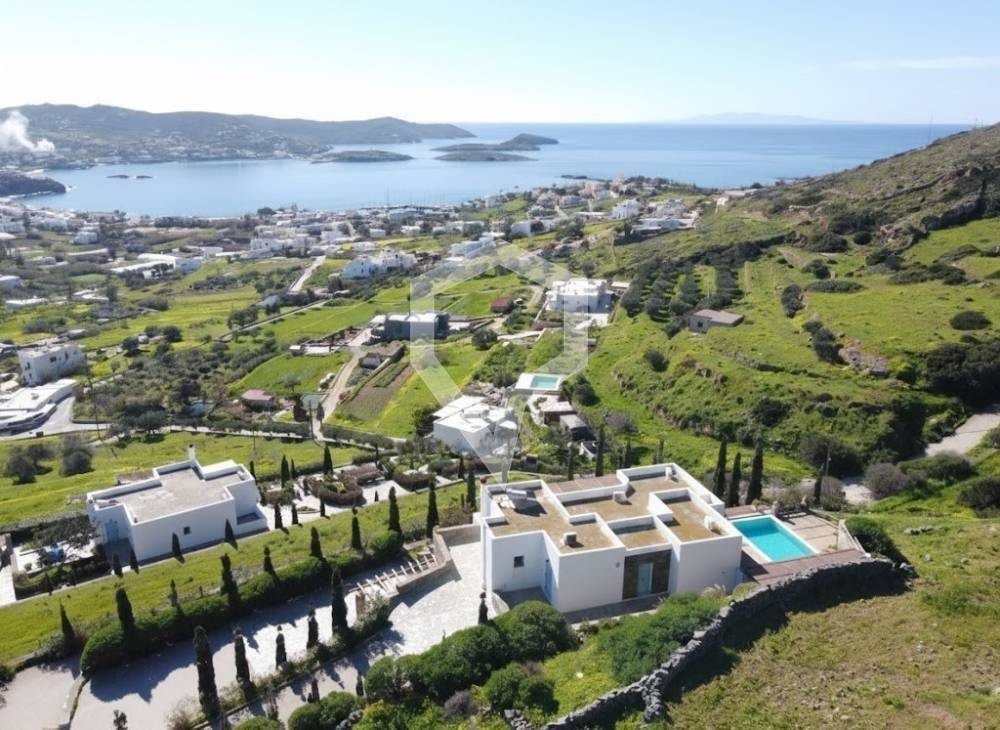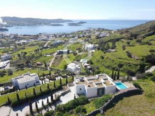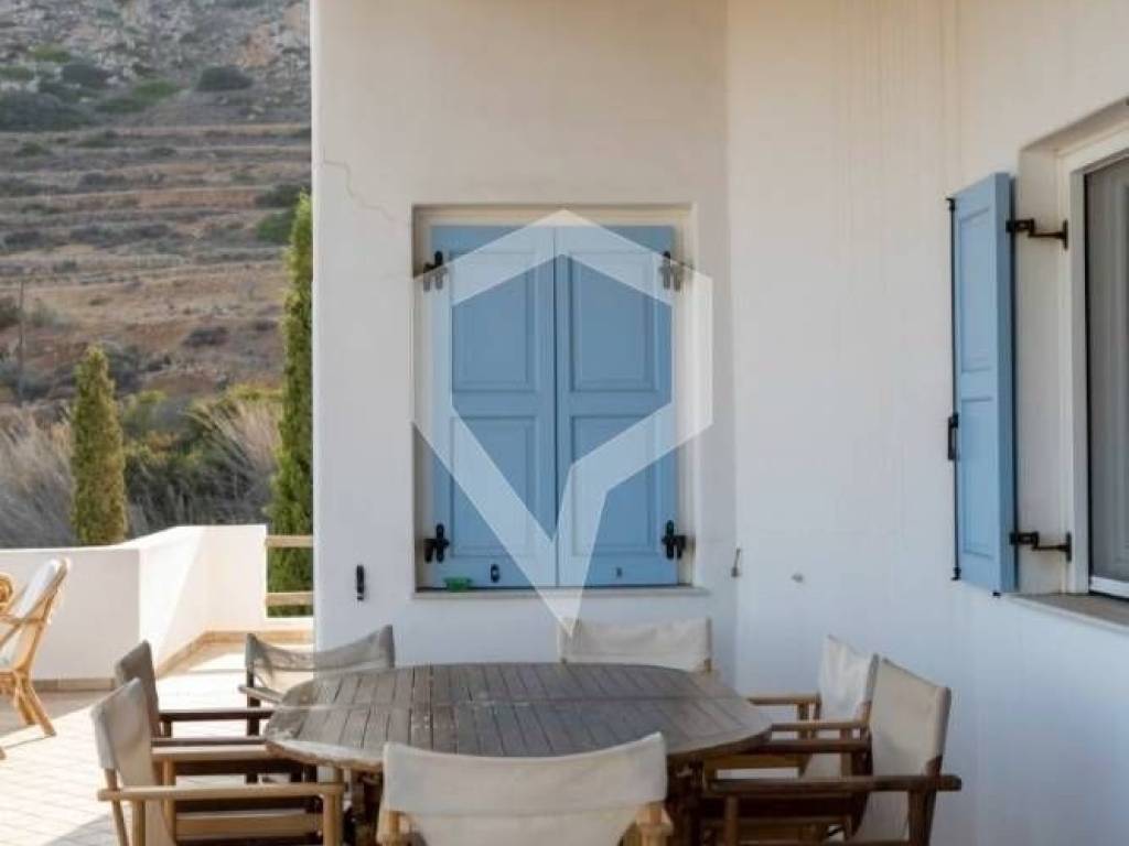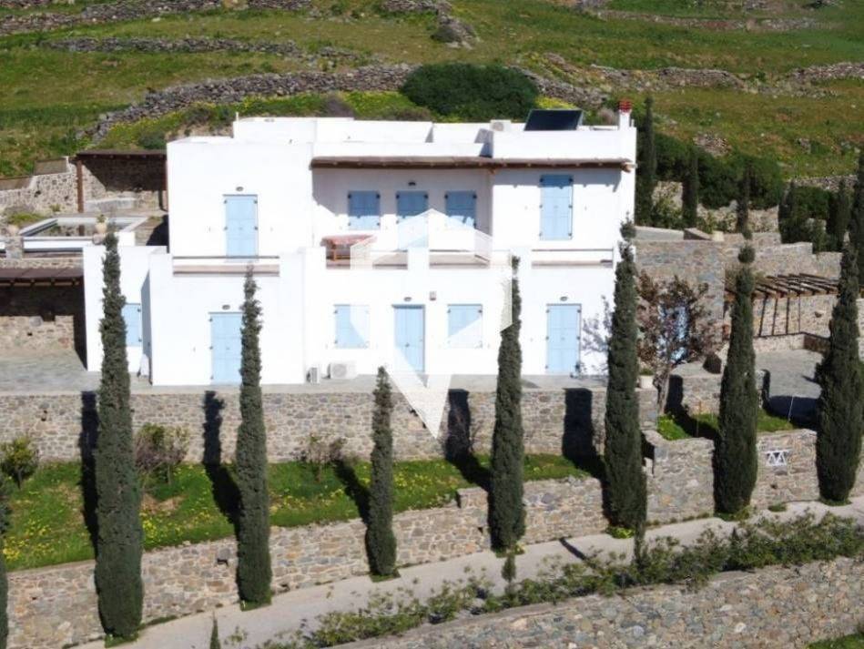 The impressive villa is located in Finikas Bay, in a sunny and wind-protected area of Syros, built in a naturally amphitheatrical location. It has a total surface area of 210 m² and is constructed on a plot of approximately 3,700 m². The main residence consists of three master bedrooms, a living room, a dining room with sea view, a fully equipped kitchen, air conditioning, an alarm system, and all necessary infrastructure and facilities. In addition, there is a fully independent guest house with two bedrooms, a living room, a dining area, a fully equipped kitchen, and full facilities. The property also includes two large water tanks.