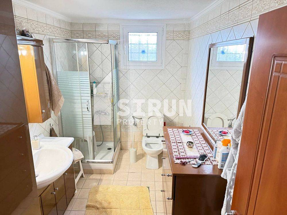 In Lakkoma for sale a detached house of 250 m² on the plot of 6.750 m². The house consists of 2 levels and has the following layout: Ground floor - 125 m²: living room, separate spacious kitchen, 1 bedroom, 1 bathroom and storage with a boiler room 1st floor - 125 m²: large living room with dining area and fireplace, kitchen, 3 bedrooms (one master with en-suite bathroom), 1 bathroom and a terrace with nice views of the sea and Mount Olympus. The floors are connected by an internal staircase, there are also 2 separate entrances. The property is legalized, without legal encumbrances! Additionally: - autonomous apartment of 40 m² with 1 bedroom, kitchen and 1 bathroom - garage with storage of 70 m² - diesel heating - 2 A/C units - solar water heater - chicken coop - garden with various vegetables, roses and 35 olive trees
