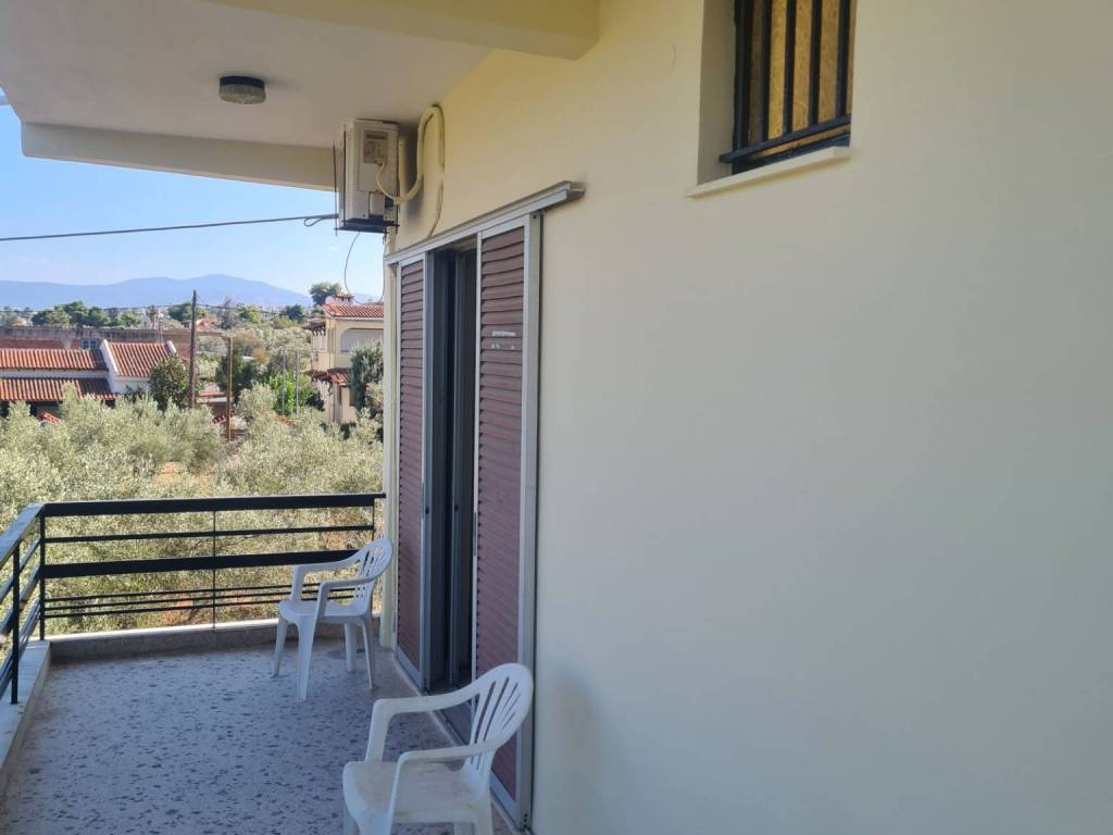 ΕΝΟΙΚΙΑΖΕΤΑΙ διαμέρισμα 1ου ορόφου, 55τμ, σε οικόπεδο 500τμ με πάρκινγκ, αποτελούμενο από σαλόνι-καθιστικό με τζάκι, καινούρια κουζίνα, δύο υπνοδωμάτια με ντουλάπες, μπάνιο με μπανιέρα, Διαθέτει αυτόνομη θέρμανση με πετρέλαιο και κλιματισμό. Ευρύχωρο μπαλκόνι με απεριόριστη θέα. Επίσης διαθέτει κοινόχρηστο χώρο με στεγασμένο BBQ και μεγάλες αυλές. Βρίσκεται στα 50m από τη στάση λεωφορείου, και η κοντινότερη παραλία βρίσκεται στα 500μ.