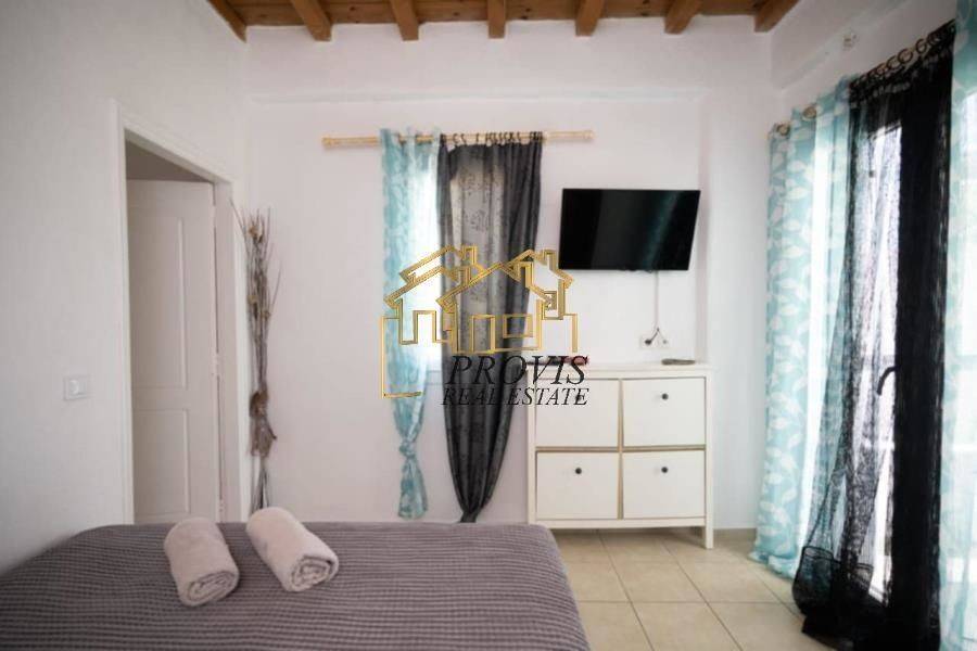Mykonos, Ano Mera, Apartment For Rent, 40 sq.m., Property Status: Amazing, Floor: Ground floor, 1 Bedrooms 1 Kitchen(s), 1 Bathroom(s), Heating: None, View: Unlimited, Building Year: 1990, Energy Certificate: E, Floor type: Tiles, Type of door frames: PVC, Features: Double Glazed Windows, Balconies, Furnished, Luxury, Roadside, Bright, AirConditioning, Painted, Renovated, Price: 800€. PROVIS REAL ESTATE ΕΕ, Tel: 2114016161, email: mesitikoprovis@gmail.com