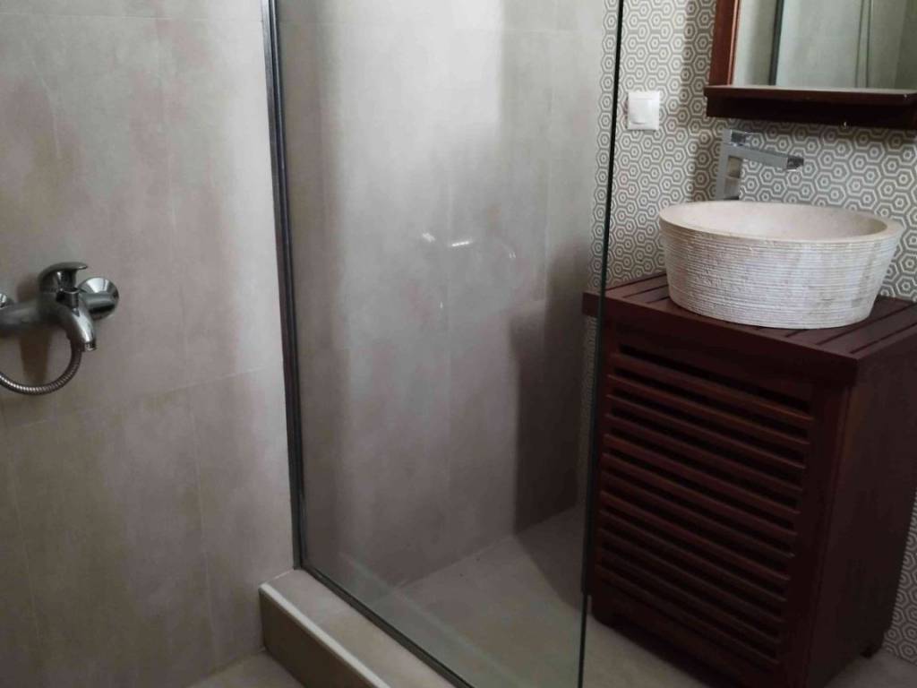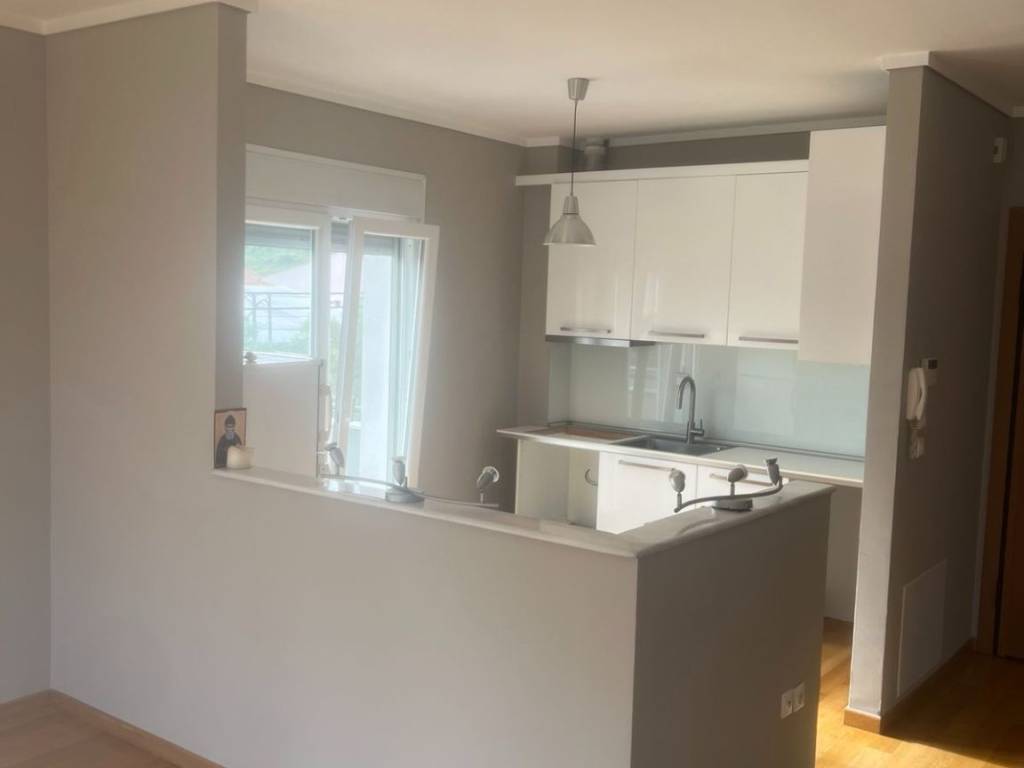At Tagarades, in a nice location, for rent a spacious corner apartment of 130 sq m is for rent on the 2nd floor of a small building. Its sunny, bright and has open view of the area around. Consists of a large living-dining room with kitchen, 2 bedrooms, bathroom, wc, storage room and wide balconies. Equipped with an armored door, fireplace, wardrobes, a/c etc. Autonomous heating with an oil burner in a separate storage room in the basement. Tagarades, where the property is located, is a settlement of approximately 3000 inhabitants at 18 km of the National Road from Thessaloniki to Moudania and 2 km left of the National Road. Its great advantage is its location. It is just 12 km from East Thessaloniki in the wider area of Thermi - International Airport. Within the village there are shops to meet all basic needs. It is served by urban and municipal transport. The village is 6 km from Thermi, the seat of the Municipality, where there are Public and Municipal services, a very well-organized health center and all banks have branches. 8 km from the international airport of Thessaloniki. Many large shopping centers, such as Mediterranean COSMOS, IKEA, Practiker, Leroy Merlyn, Carrefour, are within walking distance. Access to Thessaloniki from the National Road Thessaloniki Moudanias, but also from the National Road N. Michaniona Thessaloniki is direct. The same goes for the surrounding coasts of the Prefecture of Thessaloniki and Halkidiki.