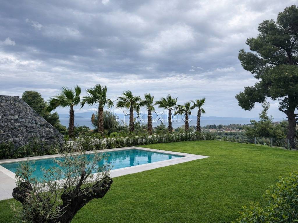 5-Bedroom Villa with Private Pool in Pefkochori Prestigious Location in Pefkochori, Kassandra – Among the Most Desirable Properties in Halkidiki Situated in the picturesque area of Pefkochori, in the heart of Kassandra, this luxury sea-view villa presents an exceptional opportunity to acquire premium real estate in Halkidiki. The region is renowned for its crystal-clear beaches, lush landscapes, and consistently strong investment value. Architectural Elegance & Functional Layout Across 180 sq.m. of Refined Living Space Set on an independent 1,100 sq.m. plot, the villa offers 180 sq.m. of sophisticated interior space designed in line with contemporary standards of comfort and style. The five spacious bedrooms, each with its own en-suite bathroom, ensure privacy and functionality, making the property ideal as a family residence or a premium holiday home in Kassandra. High-quality finishing materials, built-in wardrobes, and air conditioning in every room enhance the sense of luxury and year-round comfort. Private Pool & Panoramic Views over the Toroneos Gulf – The Ultimate Seaside Retreat One of the most impressive features of this villa is its outdoor relaxation area with panoramic views of the Toroneos Gulf. The private swimming pool, landscaped garden, and generous outdoor spaces create a sense of exclusivity and tranquility, characteristic of high-end seaside properties in Halkidiki. This residence combines Mediterranean ambiance, abundant natural light, and an elegant living environment, making it highly attractive to discerning buyers. Security, Accessibility & Strong Investment Potential Excellent infrastructure and close proximity to the center of Pefkochori provide easy access to restaurants, shops, and beaches, further enhancing the property’s value as an investment in Greek real estate. Its location in Kassandra — one of the most sought-after areas in Halkidiki — guarantees steady international demand and strong rental return potential. Refined Greek Lifestyle by the Aegean Sea The area offers a unique blend of natural beauty, cultural heritage, and fine gastronomy, transforming every stay into an authentic Mediterranean experience. This is a rare opportunity to own a luxury property with panoramic sea views in Kassandra — a symbol of elegance, serenity, and strategic investment in the Greek property market. Contact us: +30 694 527 5975
