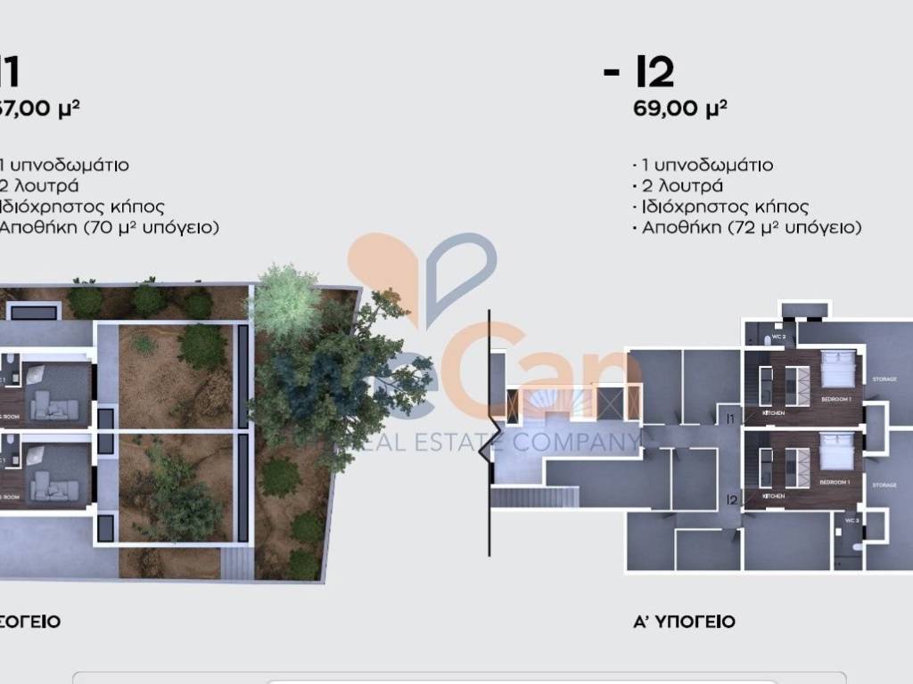 Property Code: 36-2236328. Ground-floor maisonette of 69 sq.m. with a private garden, internally connected to a 72 sq.m. semi-basement auxiliary space with flexible layout potential, located in Agia Paraskevi – College area, available for sale. The ground floor comprises a living room, kitchen, and WC, with direct access to a 65 sq.m. private-use garden. An internal staircase connects the main level to the semi-basement, which includes one bedroom, one bathroom, a laundry area, and infrastructure provisions for a second kitchen, with the possibility of expansion into a large configurable space. The semi-basement also benefits from a separate independent entrance, offering additional functional flexibility. The property includes one parking space in an underground garage. Features include autonomous heating with a heat pump, thermal-break aluminum window frames with double energy-efficient glazing, insect screens, electric roller shutters, smoke detectors, fiber-optic connectivity, and photovoltaic panels for the offsetting of shared building expenses. It is conveniently located close to public transportation, parks, a central square, a local street market, supermarkets, a playground, and sports facilities. Energy Performance Certificate: A+ Price: €320,000 Contact Phone: +30 2110016800 Email: info@wecan-realestate.gr Website: www.wecan-realestate.gr