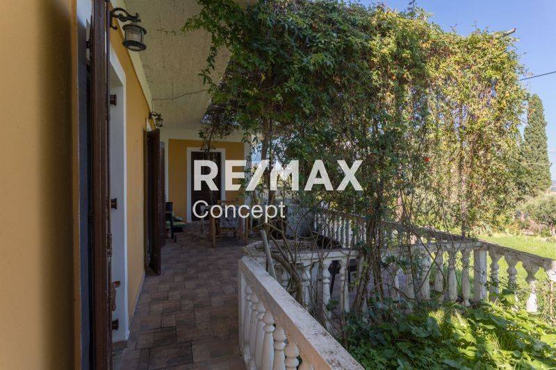 The property benefits from a fully renovated electrical system, including wiring and distribution panels in both apartments, while the kitchen and bathroom in the larger apartment have been completely refurbished. The courtyard is modern, functional, and fully paved. There is independent electricity and water supply, as well as two above-ground water tanks exclusively serving the ground floor. Heating is provided by a central oil heating system with a fully renovated burner and independent operation, while all rooms are equipped with air-conditioning units for both cooling and heating.