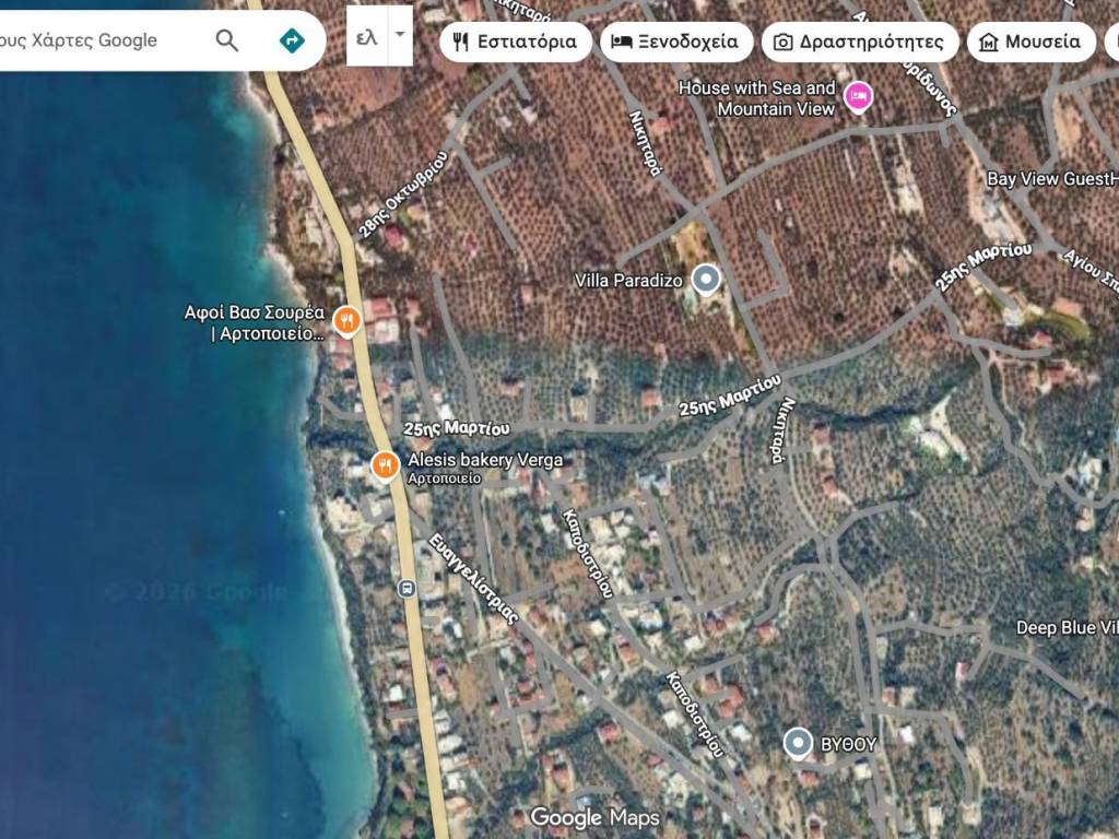 Πωλείται αμφιθεατρικό οικόπεδο 1.***/******* τ.μ. - Βέργα Καλαμάτας (ΚΑΕΚ: **/******) Τοποθεσία: Δ.Ε. Καλαμάτας, Δ.Κ. Βέργας, οδός: 25ης Μαρτίου, Παραλία Βέργας, Καλαμάτα, Τ.Κ. 24100 (Μεσσηνία) Εμβαδόν (δήλωση/τίτλος): 1.***/******* τ.μ. Χρήση (Κτηματολόγιο): Καλλιέργεια/Δενδρώδης (ελαιώνας) Ιδιοκτησία: Πλήρης κυριότητα 100/100 Πρόσβαση: Πρόσοψη σε ασφαλτόδρομο (εύκολη πρόσβαση όλο τον χρόνο) ΚΑΕΚ: **/******) Περιγραφή Διατίθεται προς πώληση προνομιακό αμφιθεατρικό αγροτεμάχιο στην περιοχή Βέργας Καλαμάτας, με άμεση πρόσβαση από άσφαλτο. Η φυσική κλίση του οικοπέδου είναι ιδανική για αξιοποίηση του ανάγλυφου (διαμόρφωση επιπέδων), προσφέροντας πρακτικές λύσεις για κατασκευή και άνετους εξωτερικούς χώρους. Το ακίνητο βρίσκεται σε περιοχή με έντονο ενδιαφέρον για ποιοτικές κατοικίες και τουριστική αξιοποίηση, συνδυάζοντας ησυχία, πράσινο/ελαιώνες και γρήγορη σύνδεση με την Καλαμάτα και τη θάλασσα. Πλεονεκτήματα ακινήτου Αμφιθεατρική μορφολογία: εξαιρετική για αρχιτεκτονική εκμετάλλευση, διαμπερή θέα/προοπτική και ιδιωτικότητα. Πρόσοψη σε ασφαλτόδρομο 51 μέτρων: άνετη πρόσβαση, διευκόλυνση εργασιών/μεταφορών και καθημερινής εξυπηρέτησης. Ιδανικό για διαμόρφωση: επίπεδα, κήπος, χώροι στάθμευσης, υπαίθριοι χώροι. Δενδρώδης καλλιέργεια (ελαιώνας): φυσικό περιβάλλον και χαρακτήρας μεσογειακού τοπίου. Καθαρό κτηματολογικό στοιχείο: ΚΑΕΚ και καταχωρήσεις διαθέσιμες για έλεγχο. Πλεονεκτήματα περιοχής (Βέργα – Καλαμάτα) Κοντά σε παραλιακή ζώνη/αναψυχή και στις υποδομές της Καλαμάτας. Περιοχή με αυξημένη ζήτηση για κατοικίες και τουριστικές μισθώσεις, με αξιόλογες αναπτύξεις γύρω. Ήσυχο, φυσικό περιβάλλον με ελαιώνες και ανοιχτούς ορίζοντες - ιδανικό για μόνιμη ή εξοχική κατοικία.