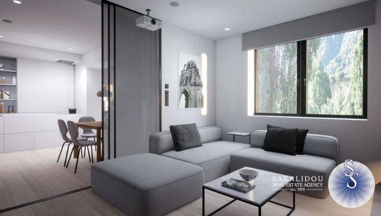 Glyfada, Ano, modern luxury apartment 111 sq.m., 1st floor, comfortable living room with fireplace, 3 bedrooms, bathroom, wc, wooden floors, independent heating, alarm system, storage room and an underground parking space. Close to public transport.