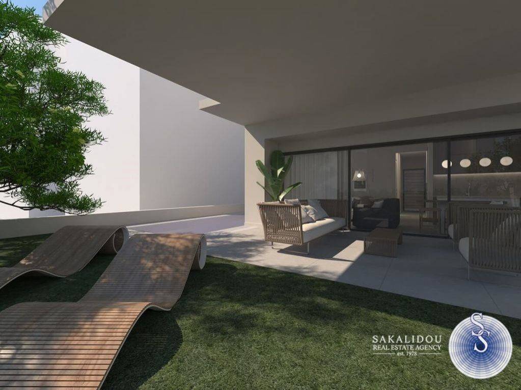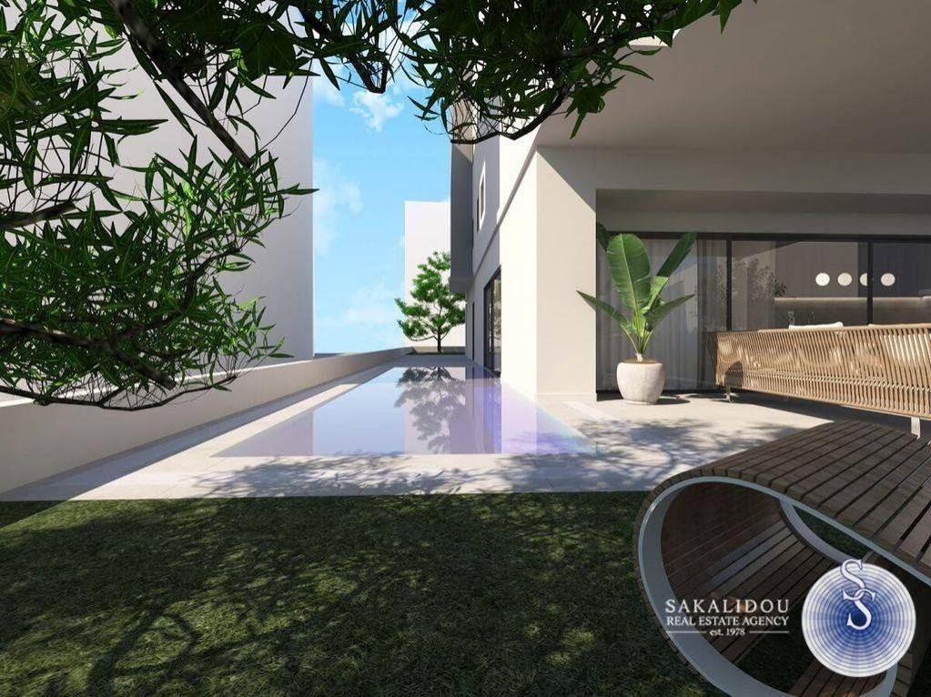 In a beautiful area in the Golf of Glyfada, a luxury residential building with 4 residences is under construction. The ground-floor maisonette has an area of 145 sq.m. and is spread over two levels. The ground level consists of an open-plan living room, kitchen, and dining area, which leads to the exclusive-use garden with a swimming pool, 2 bedrooms with a shared bathroom, a guest WC, and a laundry room. The lower level features a large master bedroom with an en suite bathroom and a cour anglaise for natural light and ventilation.