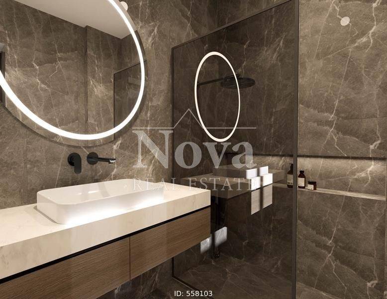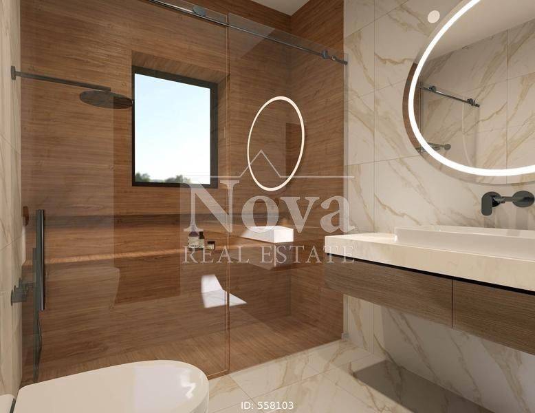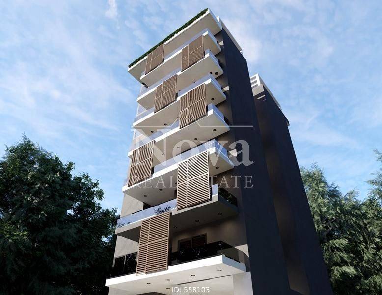 Nea Smyrni - Apartment 129sqm bedrooms 3, 5th, under construction, year built 2025, energy class A+, living room, kitchen, 2 bathrooms, heating type: autonomous (fan coil), parking, quiet, exposure, luminous, facade, painted, storage space, solar heater, external thermal insulation, fire place, balconies, large balconies, elevator, thermal shut-off frames, double glaze windows, door screen, wood & tile floors, three phase electricity, secure door, alarm, video doorbell, western orientation.