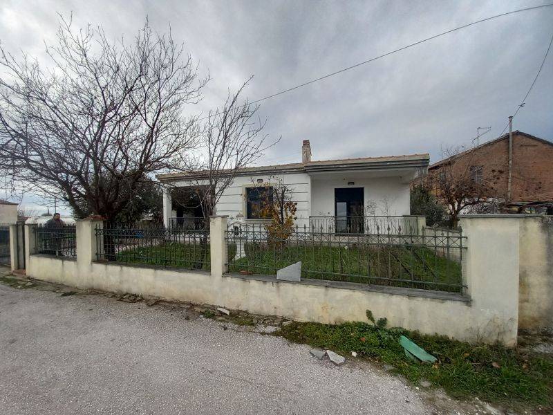 Detached house 98sq.m. on a plot 302sq.m. in Chryso Serres. It was built in 2014 and is facaded and bright. It consists of three bedrooms, a living room with a fireplace, a kitchen, and a bathroom. It has tiled floors and external synthetic frames with double glazing and screens. It has an individual oil boiler. The fenced yard has a barbecue, two warehouses, an outdoor kitchen above them, a parking space and a garden. For the indication of the property it is necessary to present your identity card.