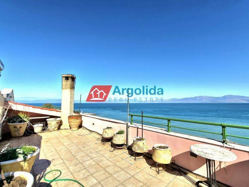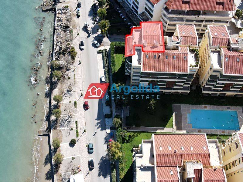 A unique seaside penthouse apartment is offered for sale in Xylokastro, Corinthia, within an exclusive complex featuring a shared swimming pool and beautifully landscaped gardens. This two-level apartment has a total area of 172 sq.m., located on the 5th and top floor, and includes a roof garden with uninterrupted sea views. Built with high-quality materials, it offers all modern comforts. The first level features a bright living room with fireplace and direct access to two large verandas, one covered, both offering panoramic sea views. The separate wooden kitchen is fully equipped with built-in appliances. There are two spacious bedrooms with large fitted wardrobes and access to a shared balcony with sea views, plus a bathroom with shower. The second level includes two bedrooms, a bathroom with shower, a separate jacuzzi-sauna area, and access to a large roof terrace providing complete privacy and stunning sea views. The apartment offers independent oil heating, aluminum frames with double glazing, and electric shutters. Wooden floors throughout create a warm and welcoming atmosphere, while the large terraces ensure unobstructed sea views and breathtaking sunsets. A key advantage of the property is direct access to the organized beach. Within walking distance, you will find shops, restaurants, the marina, water sports, and all local amenities, making it ideal both as a holiday home and a high-yield investment. The property is only 5 minutes from the suburban railway station, with direct connections to Athens International Airport.