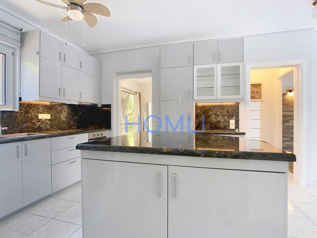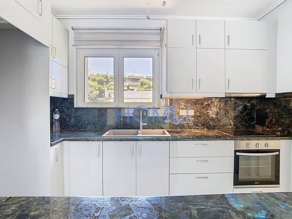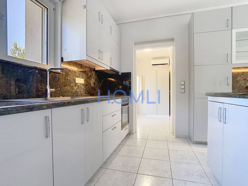 Amazing apartment in a great location in Varkiza, renovated in 2024, with underground parking, garden and large balcony with sea view. It was built in 2000, in excellent condition and with an excellent layout. It is bright and has a large elevator, autonomous oil heating, new solar water heater, aluminum frames with double glazing, electric awnings, screens, 3 new air conditioners, security door, intercom with camera, sink with garbage disposal system and underground storage of 6 sq.m. In a prime location, just 10 minutes walk from the beach ''Varkiza Resort''. HOMLI, property code 20722, contact us by phone at 2104446498.