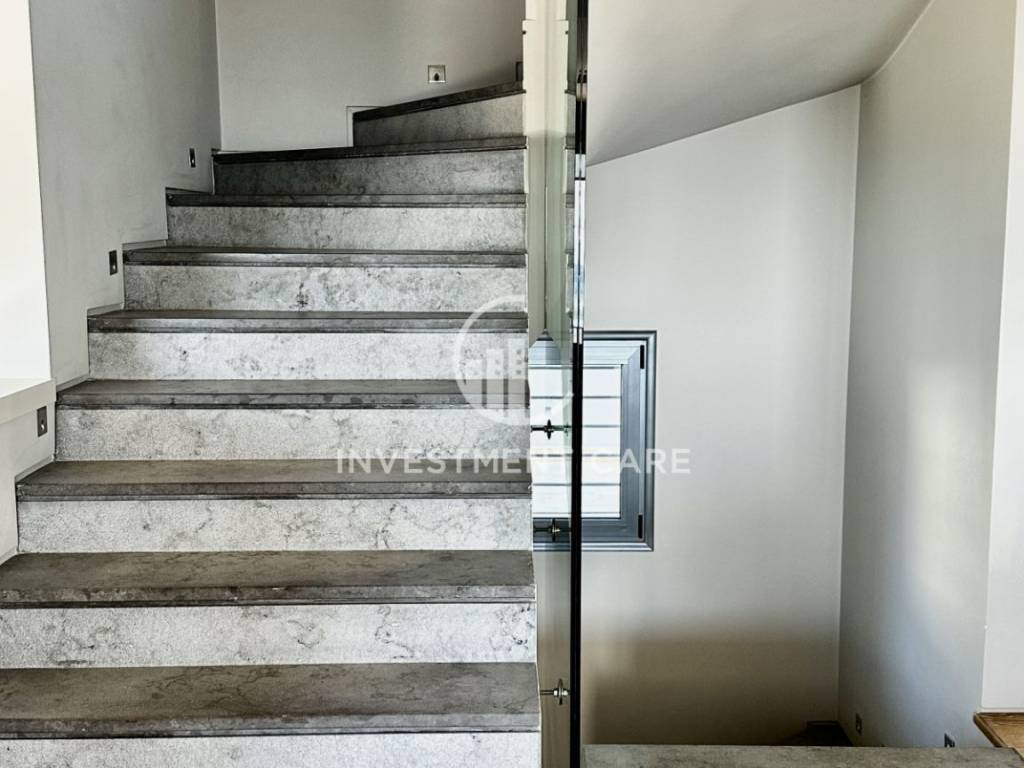 All levels are connected by an elevator. It has air conditioning, electric roller shutters, thermal facade, alarm and surveillance system with cameras, screens on all frames, underfloor heating, security doors at all entrances to the levels.