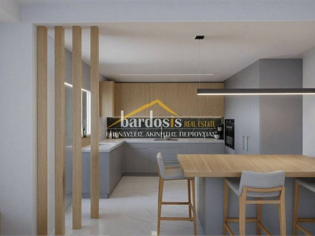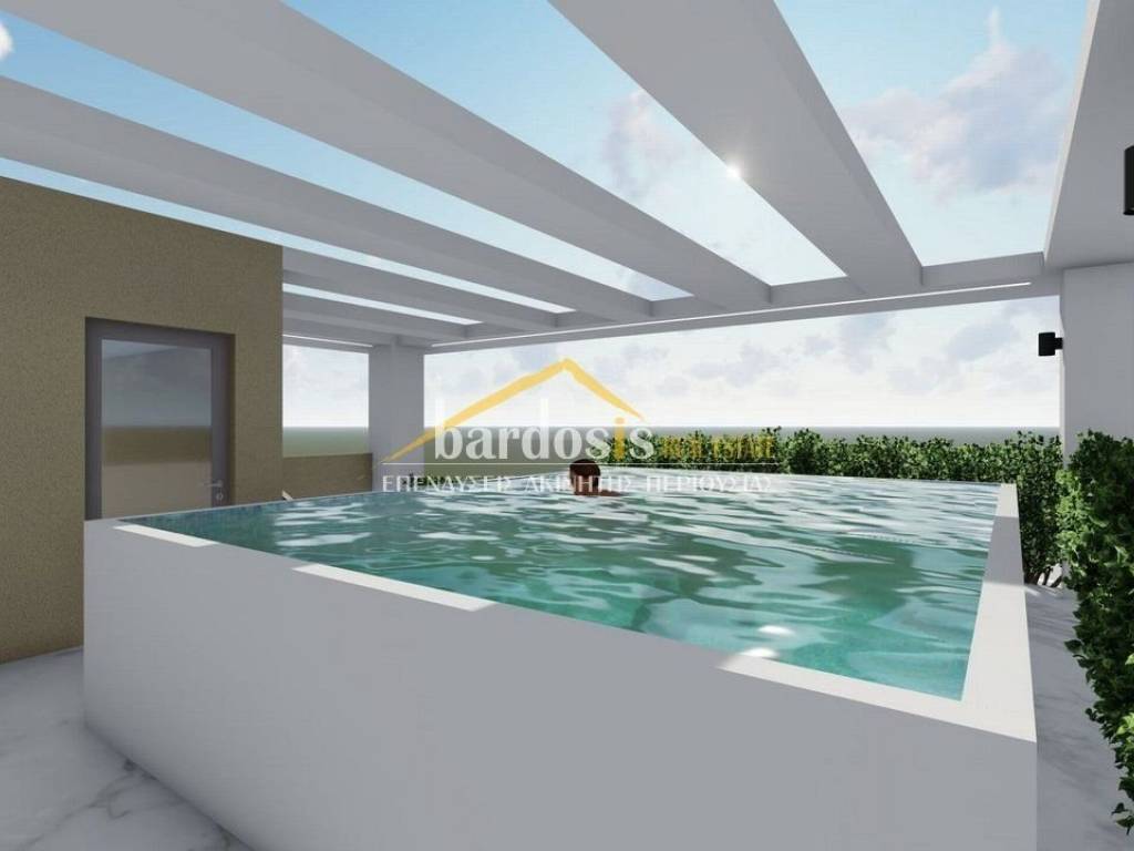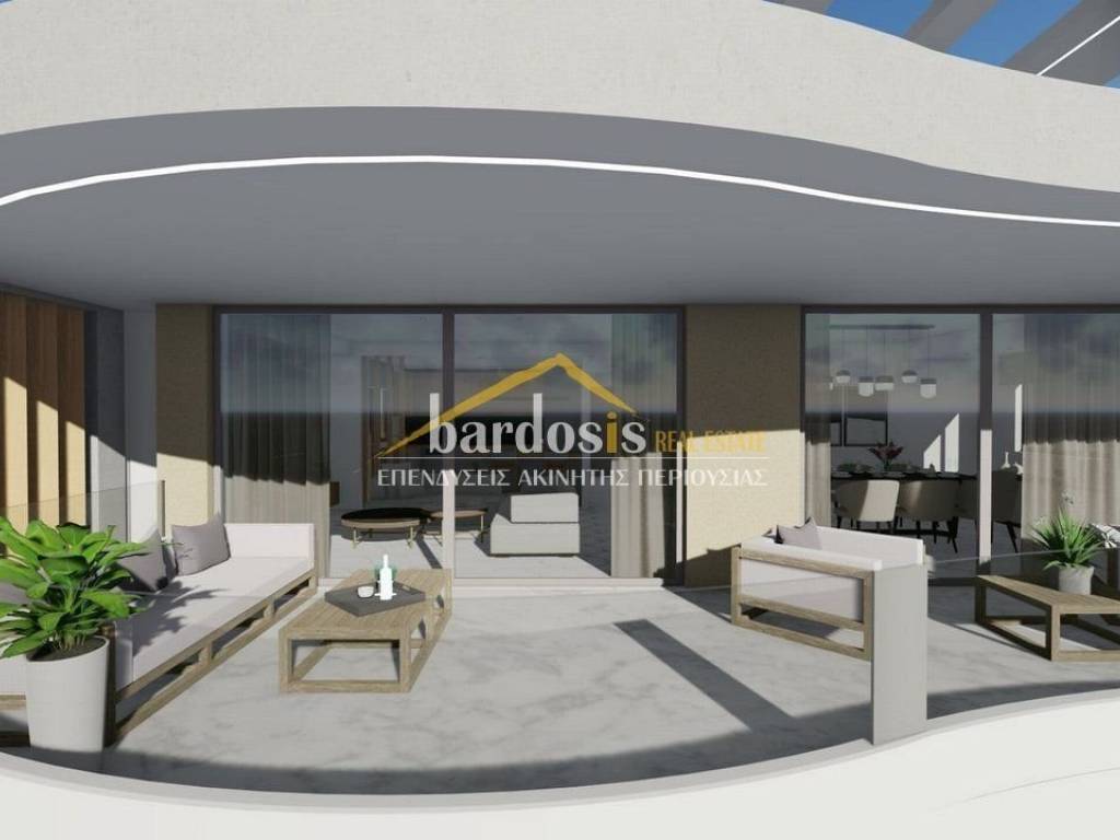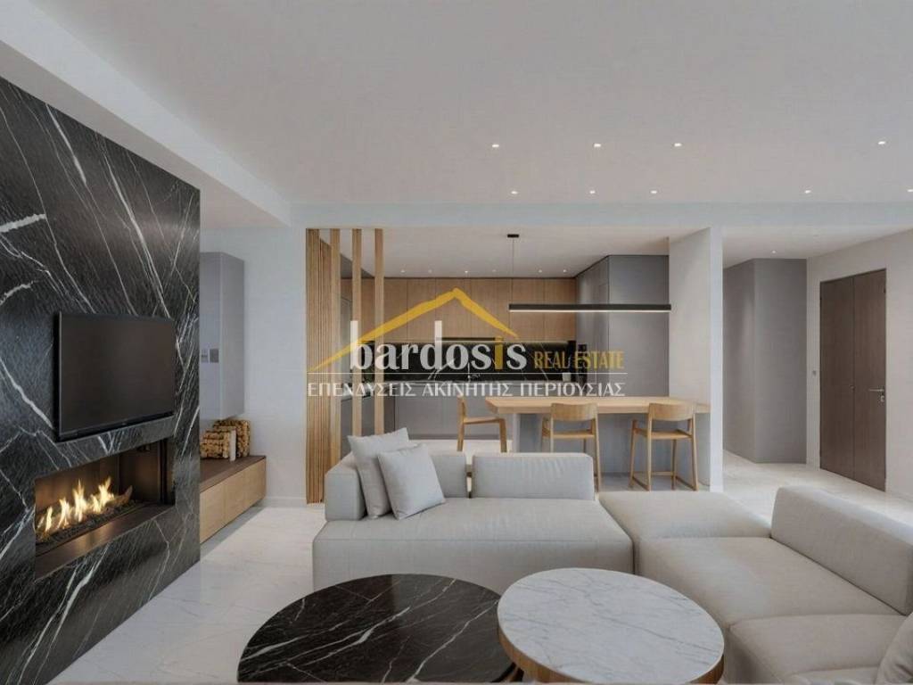 GLYFADA: Apartment 151 sq.m., 4th and top floor of a four-story apartment building, year of construction in 2026 and completion early 2027, high standards, luxurious, frontage, with excellent mountain and sea views, features: large living and dining area with oak floors and fireplace, open-plan kitchen with built-in electrical appliances, wc, 3 bedrooms with oak floors and built-in wardrobes, one of which is a master, 2 bathrooms. It also has: security door, alarm with smart home system, autonomous VRV cooling - heating installation with linear output elements, exclusive use photovoltaic arc, solar water heater, aluminum frames, double glazing, screens, large verandas, exclusive use of a 64 sq.m. roof with a 15 sq.m. swimming pool and living area, closed storage room, 2 closed underground parking spaces (Code: M-17010) Parking underground parking, WC, individual heating, porch, floors (Floors) oak, double glazing, energy class A+, solar, view, situation (Status) under construction, air conditioning, kitchen (Kitchen) open - Single, pool, luxury residence, security door, frontage, penthouse, sieves, alert, bright, use of roof