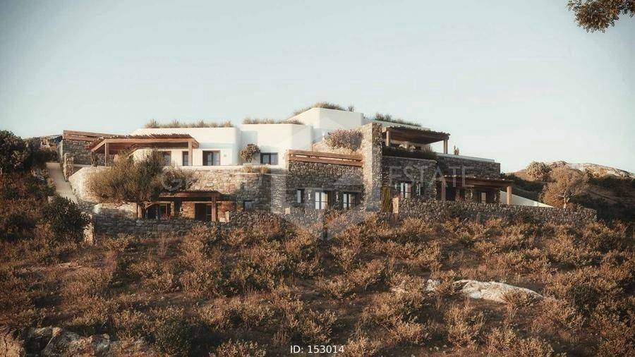 Antiparos, Agios Georgios - Villa 170sqm plot 540sqm, bedrooms 4, master bedrooms 4, levels 3, basement - ground floor - 1st, under construction, constructionstage concrete, year built 2025, energy class A+, living room, kitchen, 4 bathrooms, wc, heating type: autonomous (electricity), air condition, a/c type vrv, parking, quiet, dual aspect apartment, luminous, sea view, frontage, painted, electric roller shutters, storage space, tents, garden, private terrace, aluminum frames, double glazed windows, door screen, wood floors, alarm, luxurious, private pool, internal staircase, barbeque, pets allowed, residential zone, south-western orientation, access from asphalt. Under construction luxury detached house 170sq.m. with 540sq.m. plot in a complex of 2 private residences in Agios Georgios Antiparos, with absolute privacy and unobstructed sea view, Despotiko and Sifnos to the West. The house extends over 3 levels, has an open plan living room / dining room / kitchen, 4 master bedrooms, & 1 WC. It also has a basement storage room 40sq.m. habitable with a large opening at the back of the house due to the slope. It could very well be a family room, gym or guest suite. It also has a private garden with a swimming pool, bbq and lounge areas. The property is expected to be delivered in July 2027. Ideal for a permanent residence, a holiday home or an excellent investment.