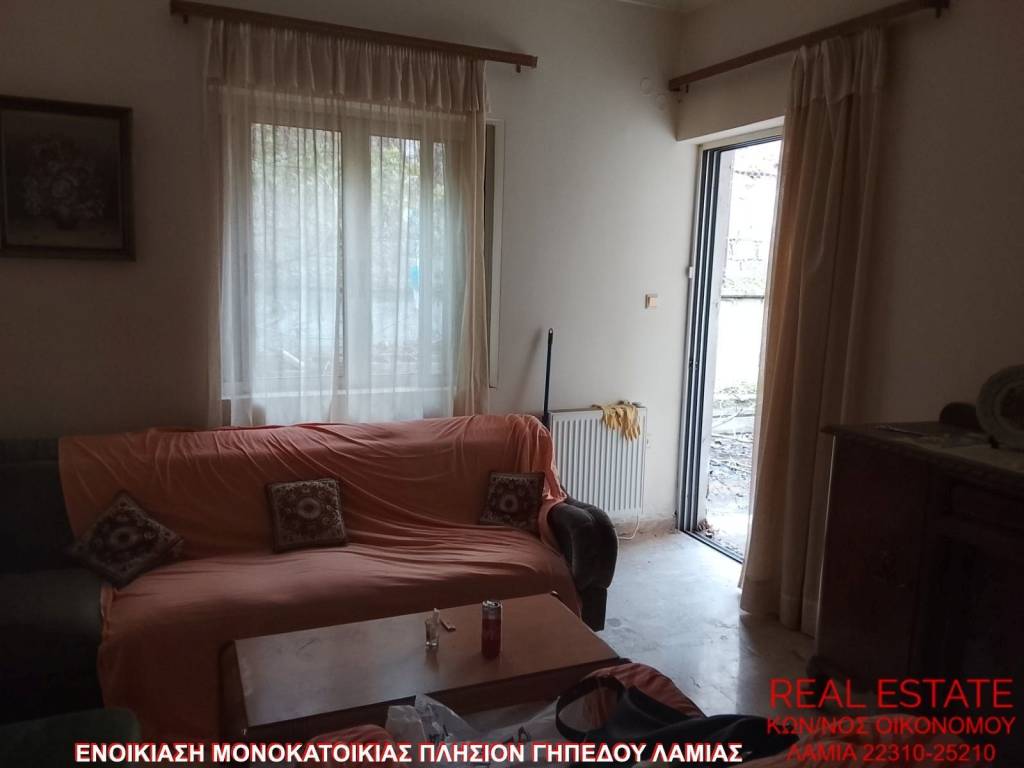 Detached house for rent, near Lamia Stadium. It is 100 sq.m., ground floor, semi-furnished, airy and bright. It consists of a living room, kitchen, two bedrooms and a bathroom. It has autonomous heating and a yard. Rental price 300 euros.