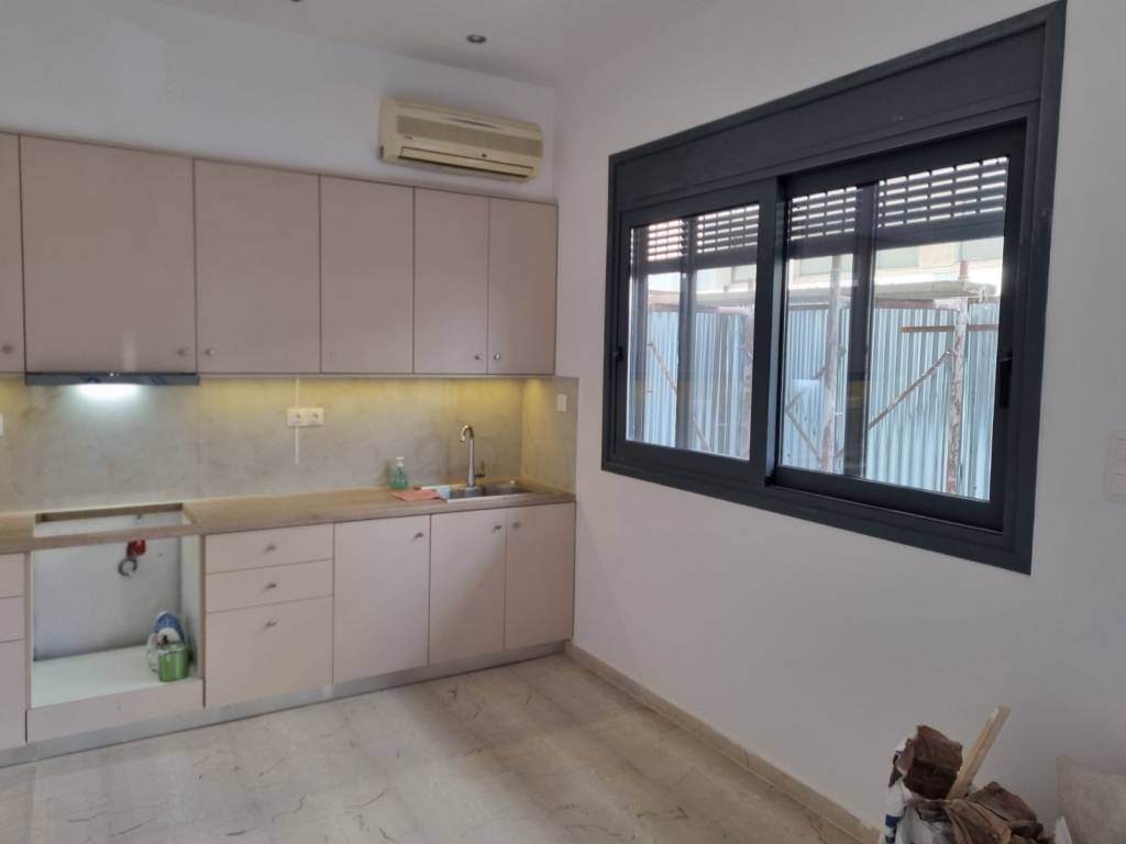 Εισογειο διαμέρισμα 60,5 τμ πληρως ανακαινισμενο. Θερμοπροσωψη,θερμοδιακοπτομενα τζάμια, μαρμαρινο πατωμα. Χωρίς κοινόχρηστα ξεχωριστό laundry room. Μόλις αποπερατωμενο. Με δική του θέση πάρκινγκ. Καινούργια ηλεκτρολογικη και υδραυλική εγκατάσταση καινούργια κουζινα,ντουλαπα, ηλεκτρικό ρόλο βαρέως τυπου.Κλιματισμος,ψευδοροφές με λάμπες led. Πολύ κοντά σε super market, στάσεις λεωφορείων τέντα. Οχι μεσίτες