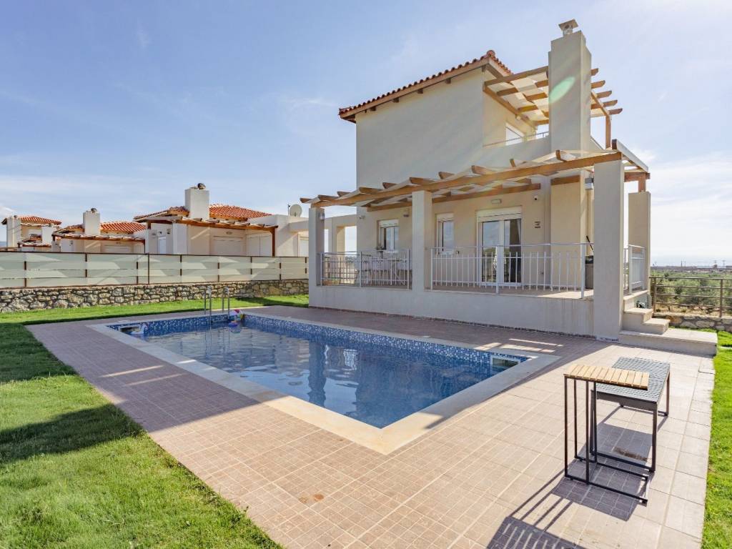 Introducing ELEA, a refined three-level maisonette set within the tranquil landscape of Panormo in Rethymno. Blending contemporary architecture with subtle Cretan heritage, ELEA forms part of an intimate collection of just five residences, each thoughtfully positioned within the natural surroundings. Enjoying its own expansive 1,100 m² private plot, the property is embraced by olive trees, open sky and the calming Mediterranean breeze. Designed with a modern yet culturally rooted architectural vision, ELEA harmonizes clean lines and natural textures with the gentle contours of the Cretan environment. Large openings invite light throughout the day, while every level frames shifting views of the mountains, the sea and the warm hues of the sunset. The result is a living experience that feels both elevated and deeply connected to the land. Spanning 83 m² over three floors, the interior balances intimacy with fluidity. Two serene bedrooms and two elegantly appointed bathrooms provide a sense of comfort and privacy, while the main living spaces are crafted for ease, relaxation and understated sophistication. The home’s multi-level layout creates a soft rhythm between openness and retreat, encouraging residents to move naturally between indoor and outdoor spaces. Outside, ELEA’s private swimming pool becomes the centerpiece of daily life. Set against a backdrop of olive groves and distant sea views, it offers an idyllic escape for sun-soaked afternoons or quiet evenings as the sky transitions through shades of gold and rose. With the sea located less than one kilometer away, coastal living is always within effortless reach. ELEA is a home for those who appreciate authenticity, natural beauty and an architecture that respects its surroundings. A tranquil retreat shaped by light, nature and timeless Cretan serenity.