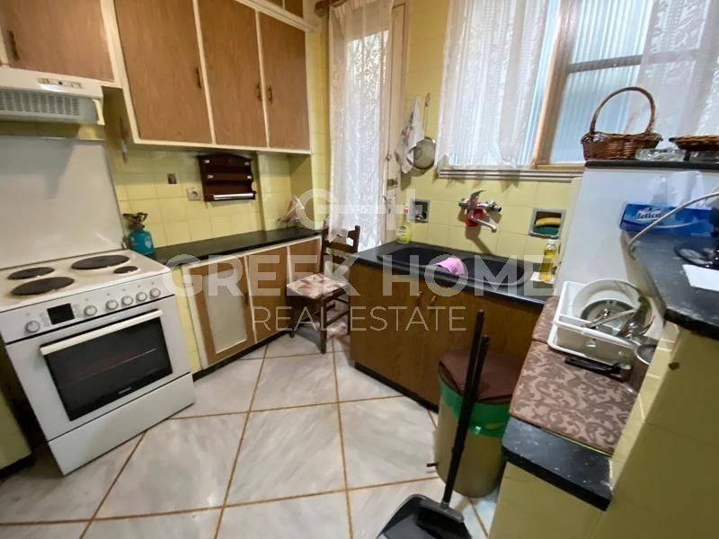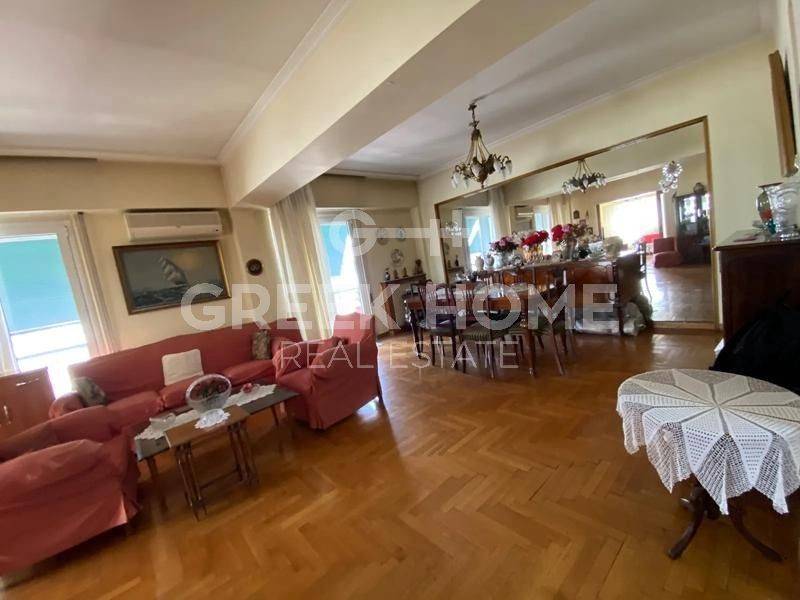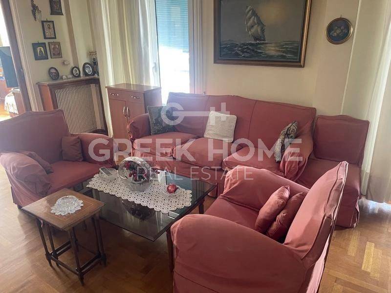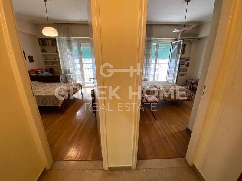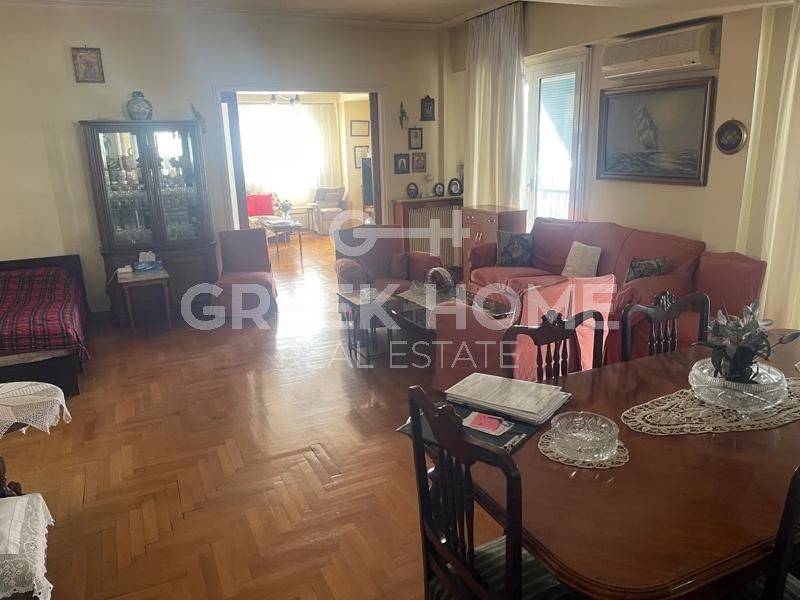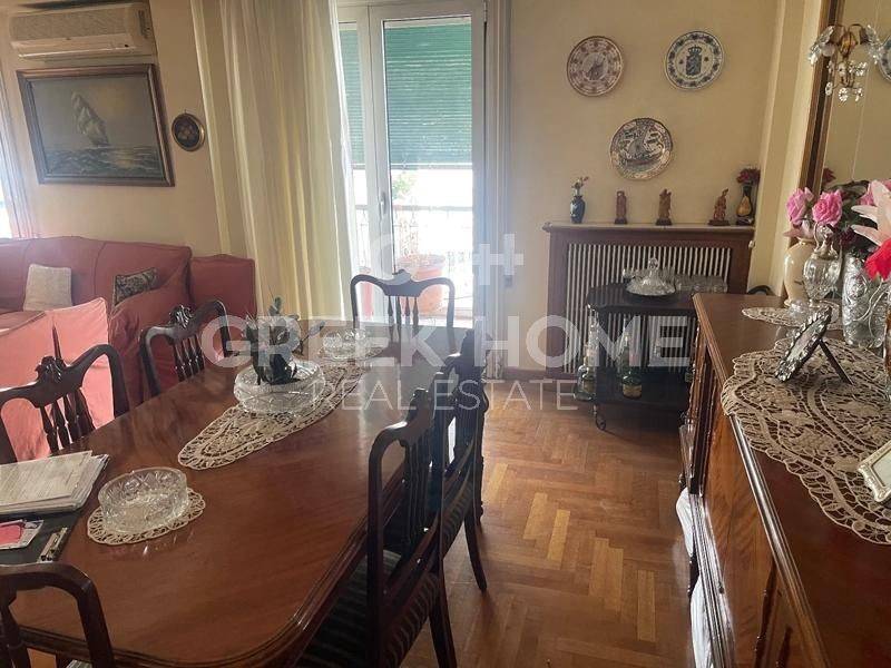Kypseli - Apartment 130sqm plot 470sqm, partially furnished, bedrooms 3, 5th, renovated, year built 1960, renovation year 2020, energy class E, living room, hall, kitchen, bathroom, wc, heating type: central (oil), air condition, dual aspect apartment, luminous, corner, frontage, storage space, solar heater, balconies, tents, elevator, aluminum frames, door screen, wood & marble floors, separate kitchen, secure door, southern orientation, close to metro/train (up to 200m), close to bus stop (up to 50m), close to university/college (up to 200m), close to park (up to 200m), close to super market (up to 200m), close to hospital (up to 200m), close to square (up to 100m).