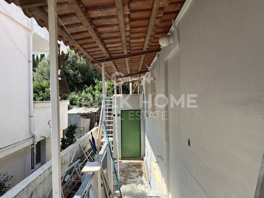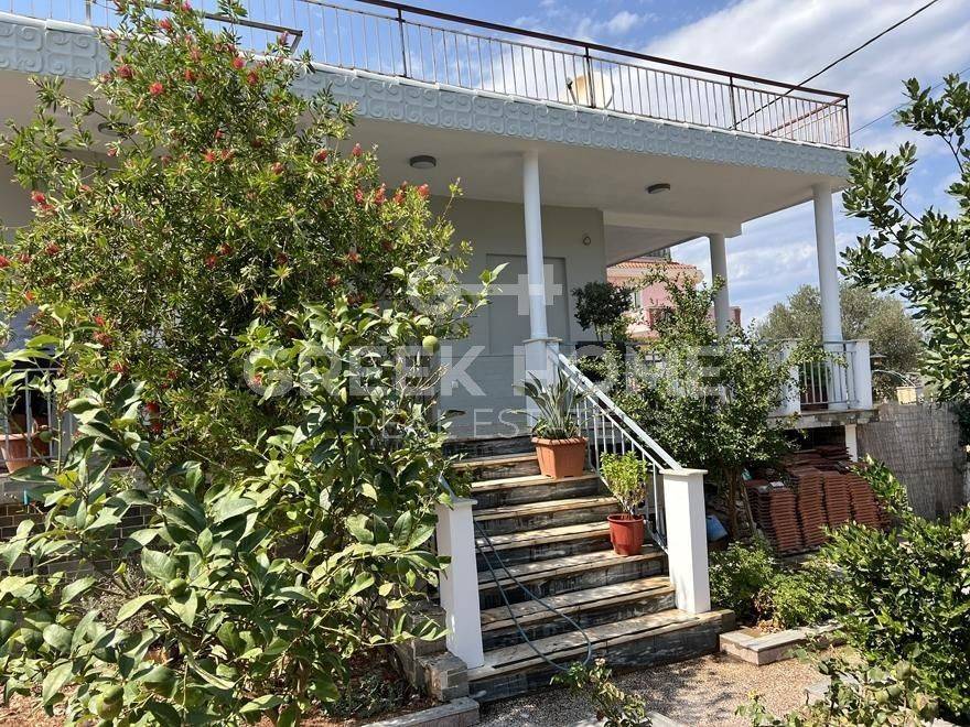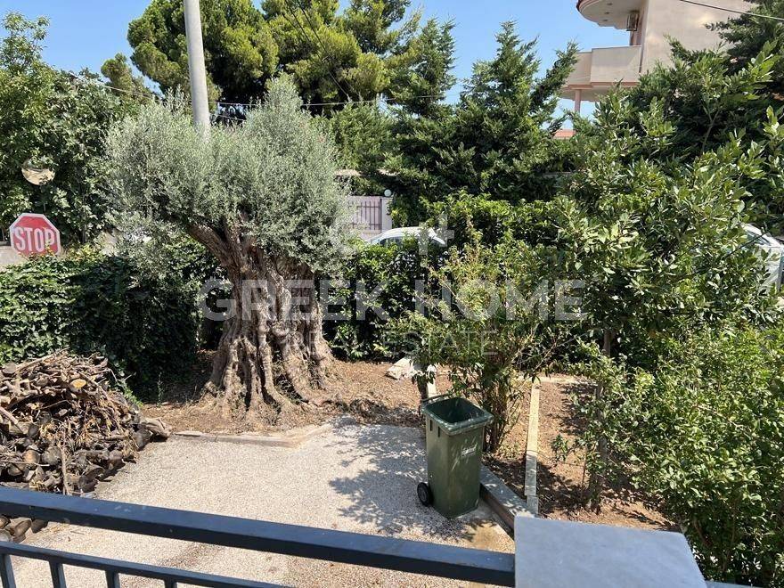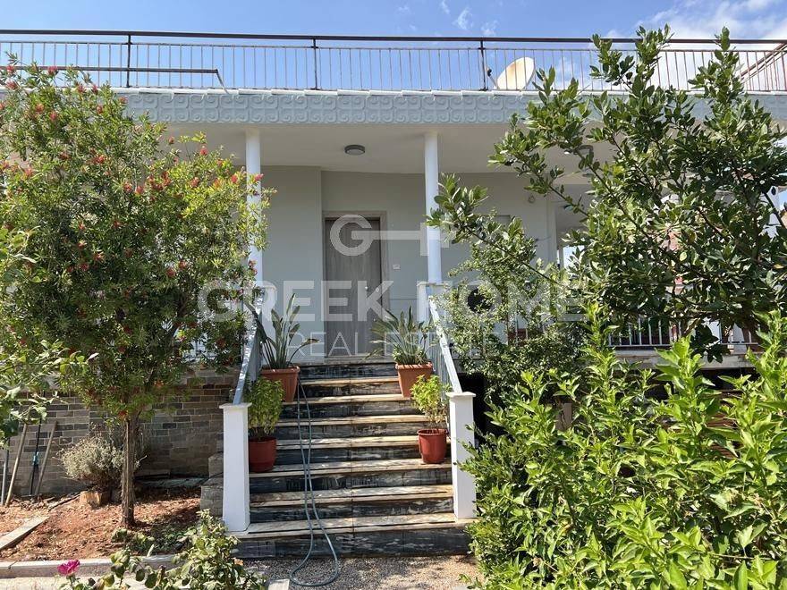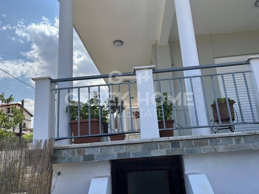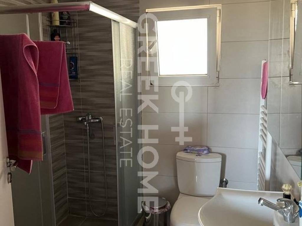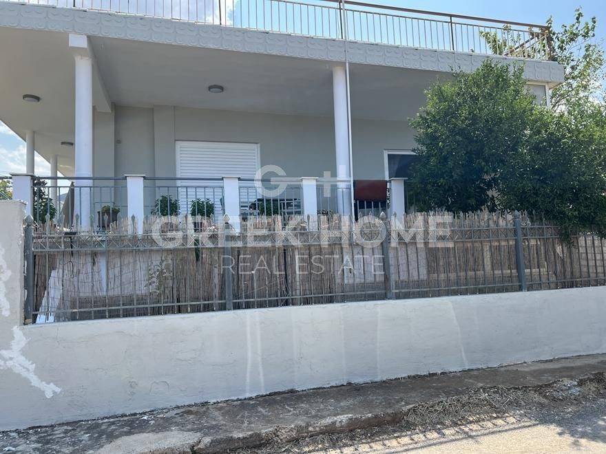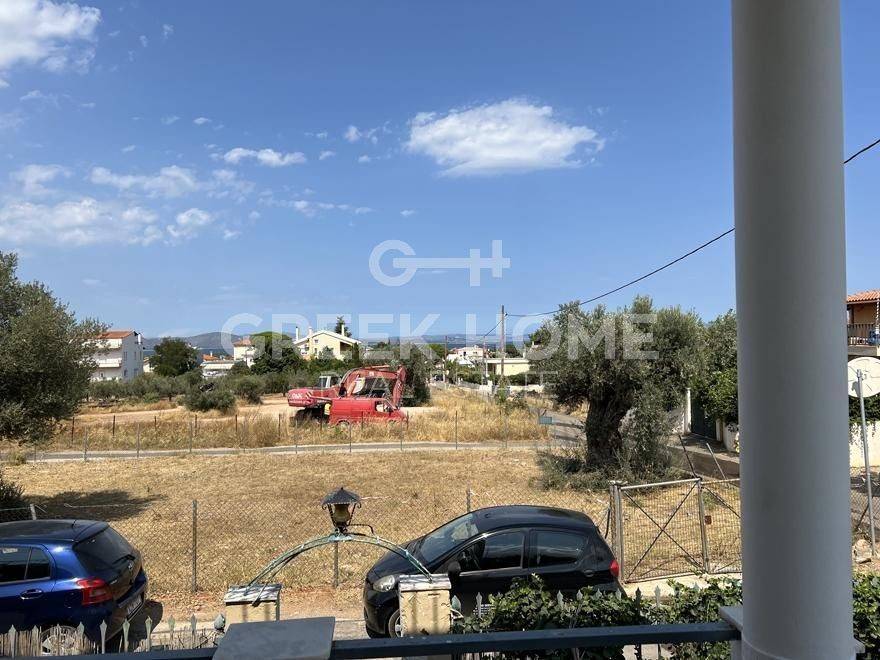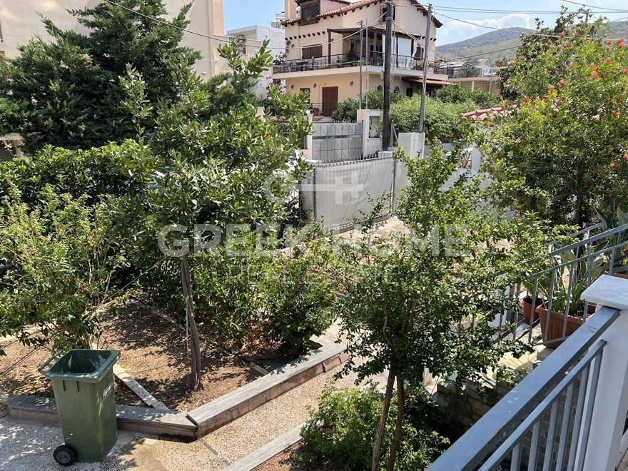 Nea Makri, 3rd Poleodomiki Enotita - Floor Apartment 67sqm plot 276sqm, partially furnished, bedrooms 2, upper floor, excellent condition, energy class D, living room, hall, kitchen, semi-outdoor space, bathroom, heating type: autonomous (oil), air condition, parking open space, quiet, dual aspect apartment, luminous, corner, sea view, frontage, painted, storage space 10sqm, solar heater, balconies, large balconies, garden, private terrace, aluminum frames, door screen, laminate floors, without common charges, secure door, barbeque, pets allowed, east-western orientation, price is negotiable.